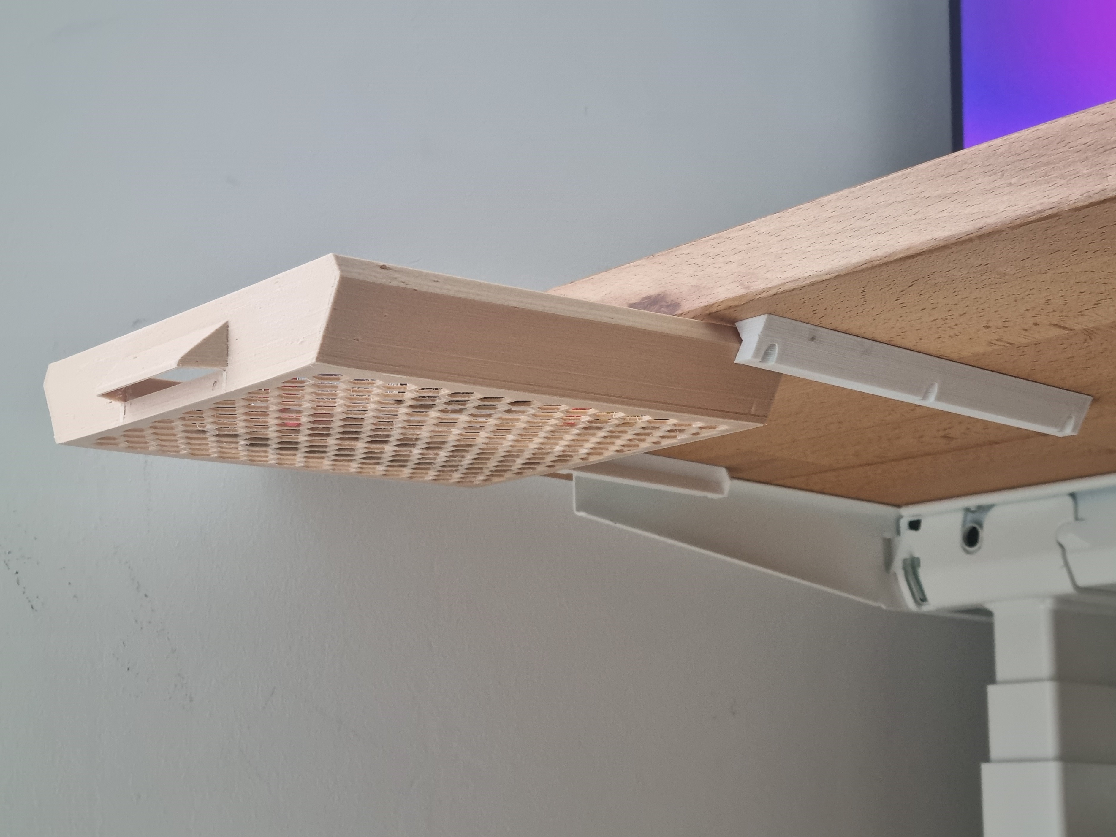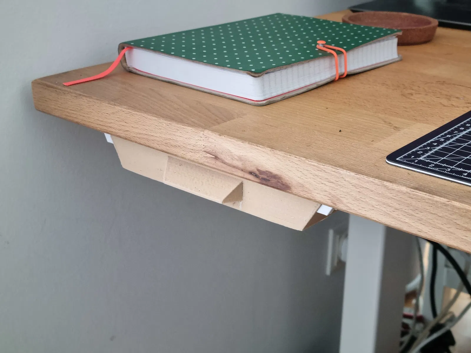 Mẫu này được thiết kế để lắp dưới bàn làm việc của bạn, cung cấp khả năng truy cập dễ dàng vào bút, giấy, sổ tay và các vật dụng cần thiết khác. Có cơ chế trượt mượt mà để đảm bảo các vật dụng của bạn được giữ an toàn và trong tầm tay. Ngoài ra, nó dễ dàng lắp đặt với ba lỗ gắn ở mỗi bên. (Tôi đã lắp đặt nó với hai lỗ ở mỗi bên và hoạt động tốt).