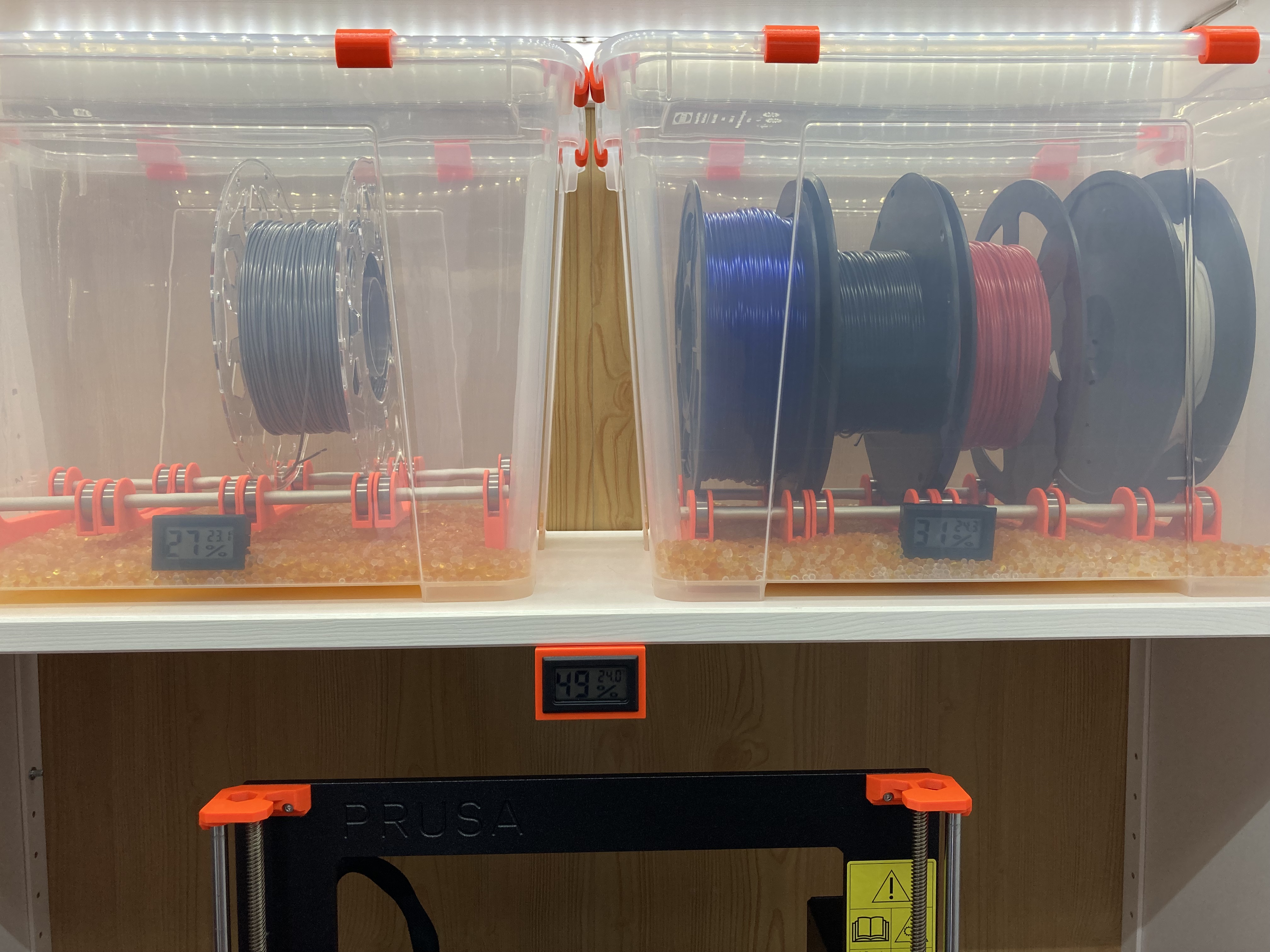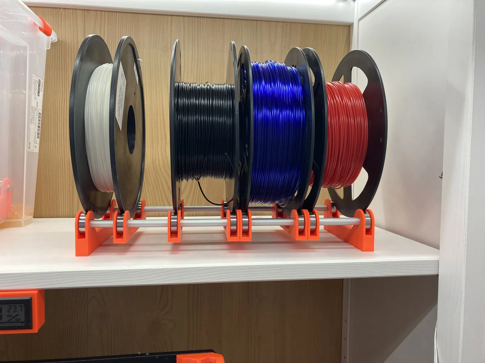 Giá đỡ cuộn sợi in với mức tiêu thụ sợi tối thiểu. Phù hợp với hộp IKEA SAMLA 39x28x28 cm / 22l, có thể chứa 4 cuộn sợi. Có thể sử dụng riêng lẻ và chiều rộng có thể điều chỉnh. Phù hợp với cuộn có đường kính từ 12cm và chiều rộng thành bên tối đa 5,5mm.