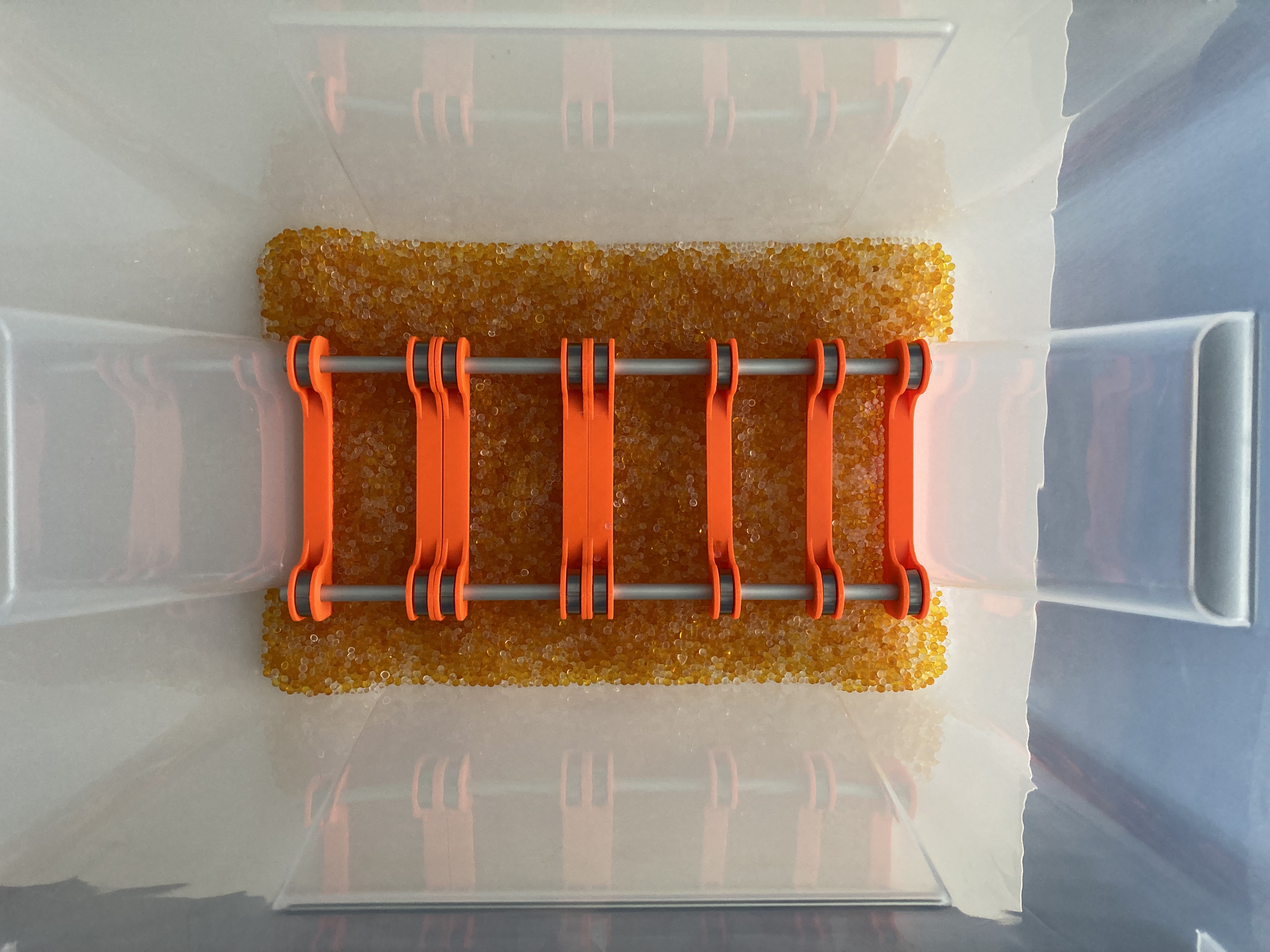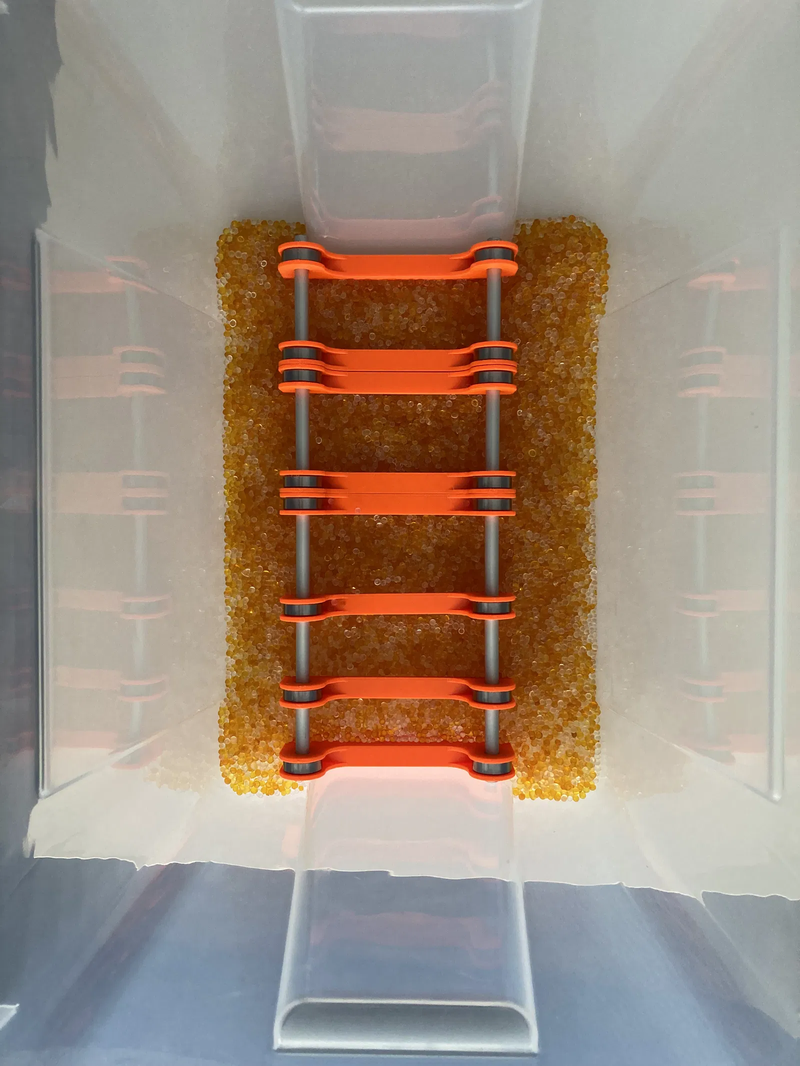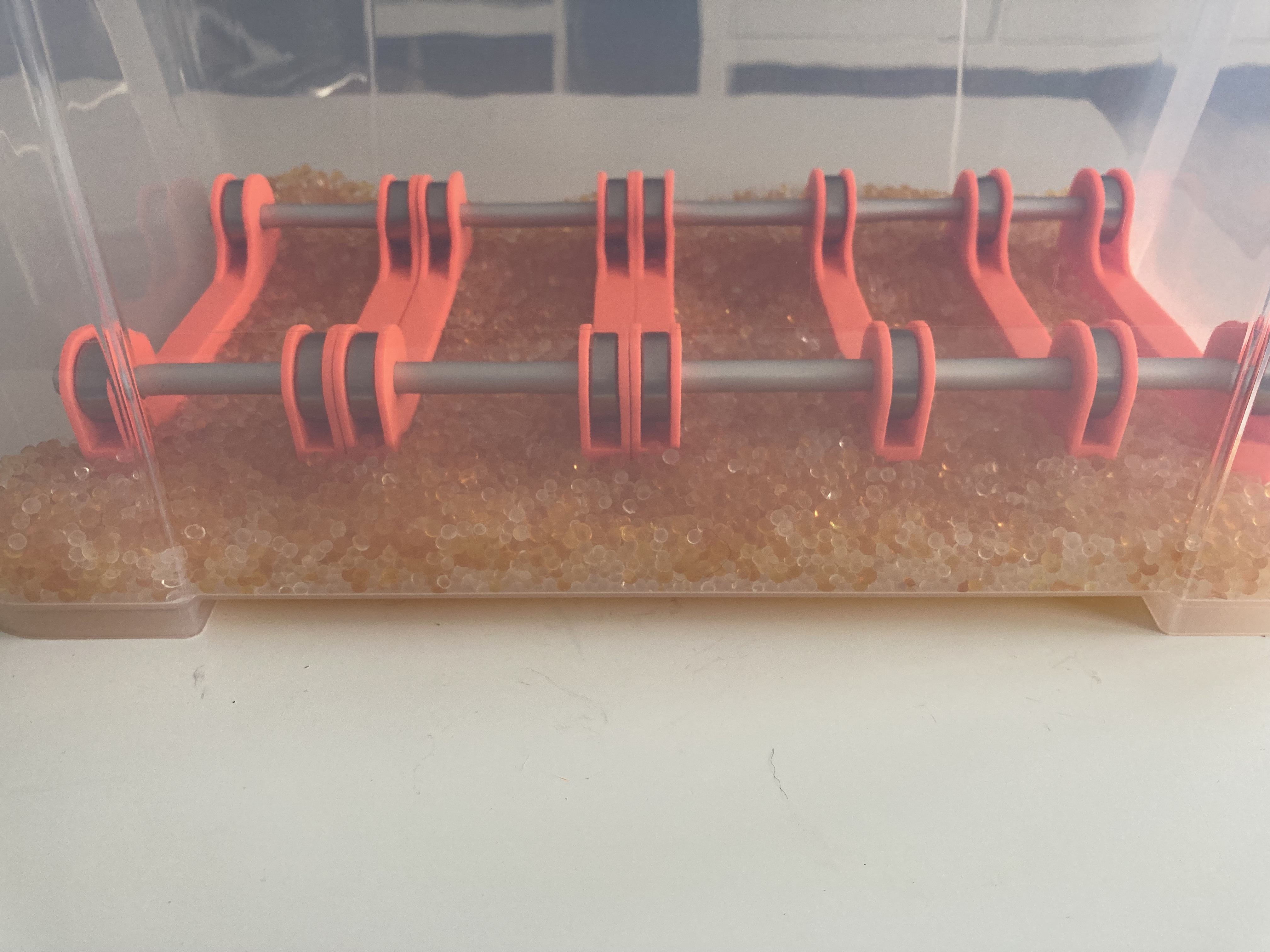 Nếu giá đỡ ở trong hộp SAMLA, 1L silica gel sẽ vừa với hộp để không ảnh hưởng đến sợi.