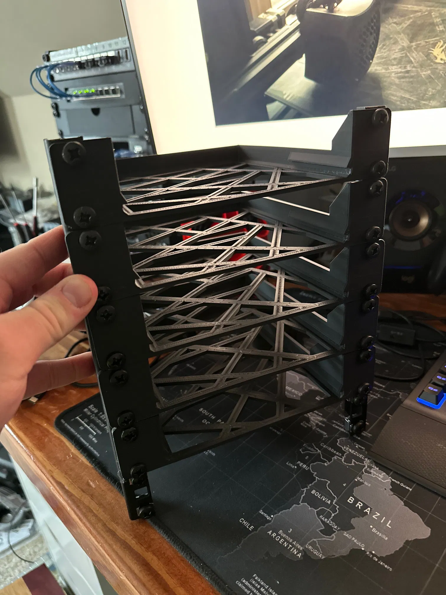 Tôi có 4 thanh ray máy chủ góc thừa và quyết định thiết kế một hệ thống ngăn kéo xung quanh chúng, tôi đã thiết kế mọi thứ từ đầu.