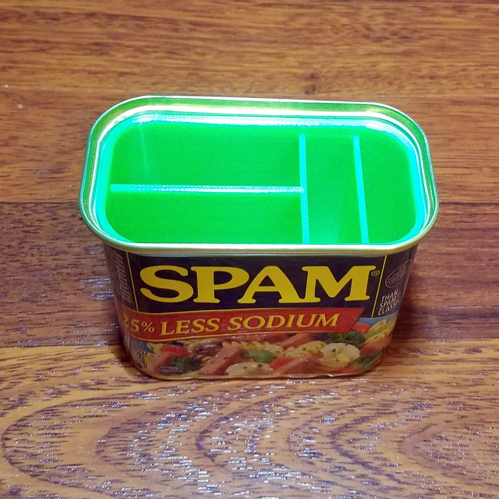 Hết miếng SPAM ngon lành rồi, giờ làm gì với cái lon SPAM thú vị đó đây?!? Đây là một bộ chia lon SPAM tiện dụng để bạn sắp xếp đồ đạc của mình. Đã bao gồm hai phiên bản: bộ chia 4 ngăn và bộ chỉ có vỏ ngoài.