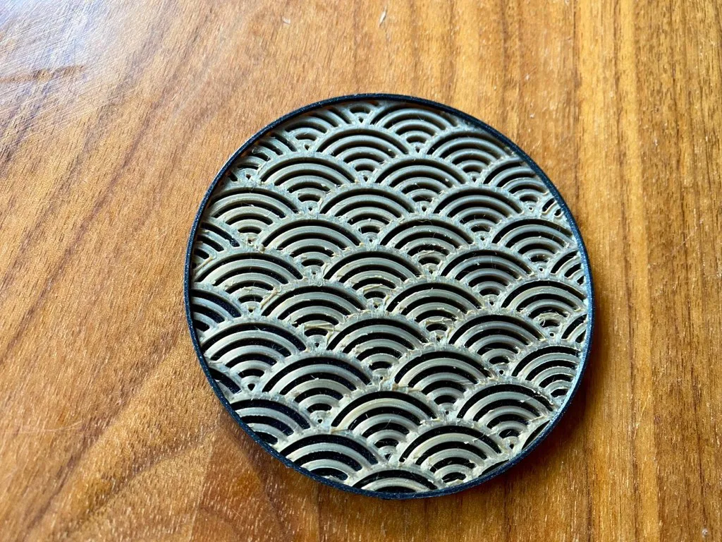 Đế lót ly với họa tiết sóng Nhật Bản, ý tưởng lấy cảm hứng từ https://www.thingiverse.com/thing:4823069.