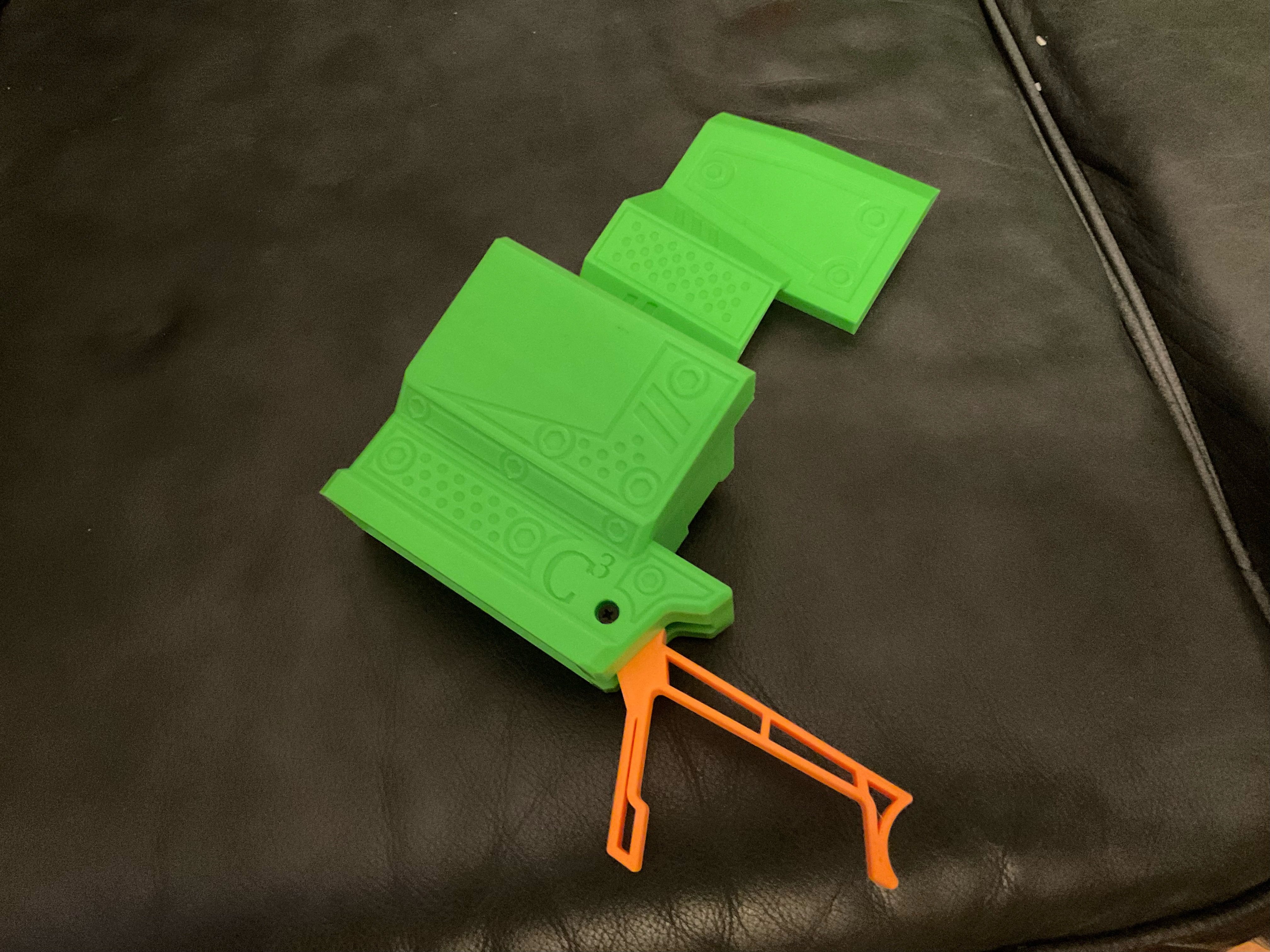 Thay thế phễu chứa đạn của Matrixfire để cho phép nó nạp băng đạn. Đấu dây lại blaster với pin Lipo 2s hoặc 3s để có kết quả tốt nhất. Nếu chạy bằng 3s, tôi khuyên bạn nên thêm bộ điều khiển PWM để kiểm soát tốc độ bánh xe nạp, vì khi chạy ở chế độ 3s đầy đủ, nó có thể làm cháy rãnh trên viên đạn.