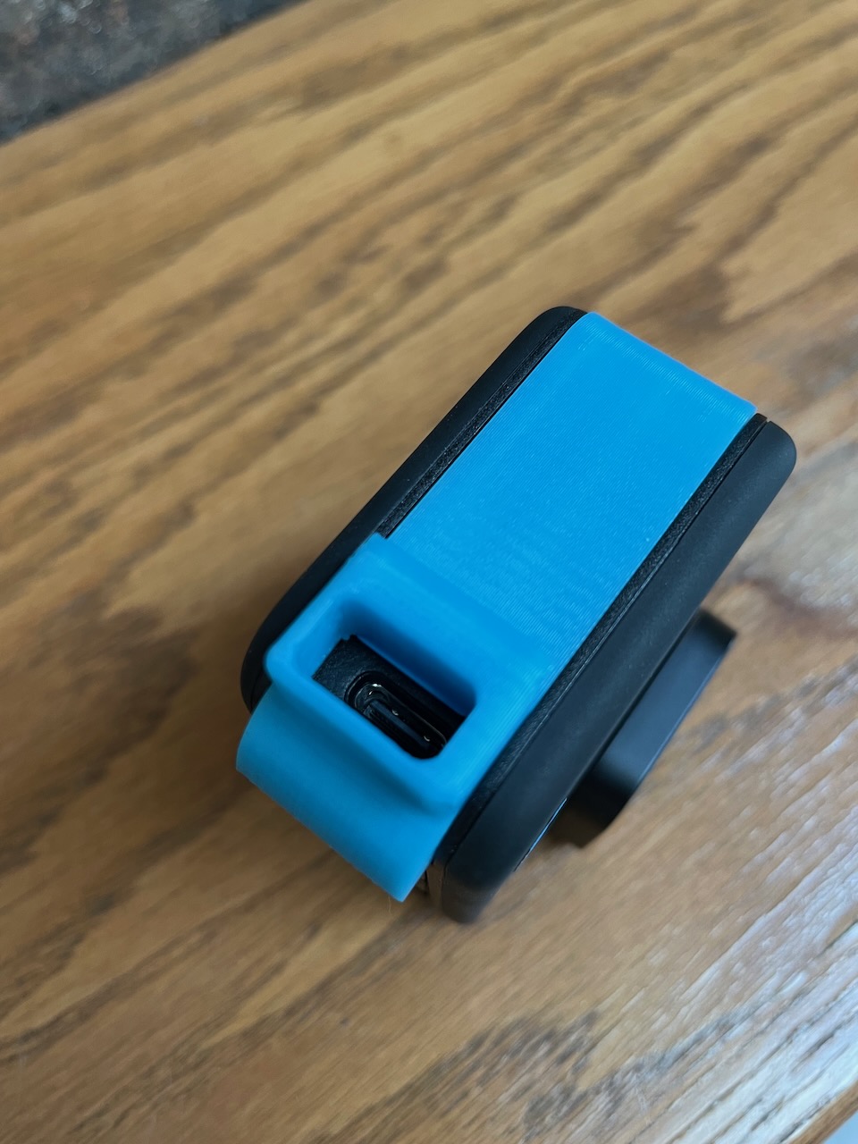 Cửa pin cho GoPro Hero 9-13 cho phép bạn cắm cáp USB khi cửa đóng. Tệp STEP có sẵn để chỉnh sửa. In nghiêng để không cần hỗ trợ.