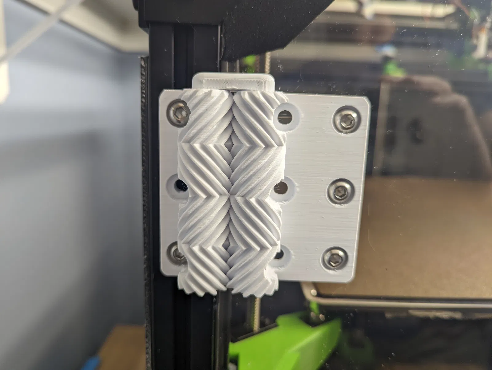 Phiên bản được chụp ảnh được in bằng PLA với các lớp 0,2mm. Việc lắp các chốt vào bánh răng cần một lực ấn mạnh để vào đúng vị trí. Không giống như trong hình, có thể sử dụng hai "chốt trên" để cố định bản lề từ cả hai phía.