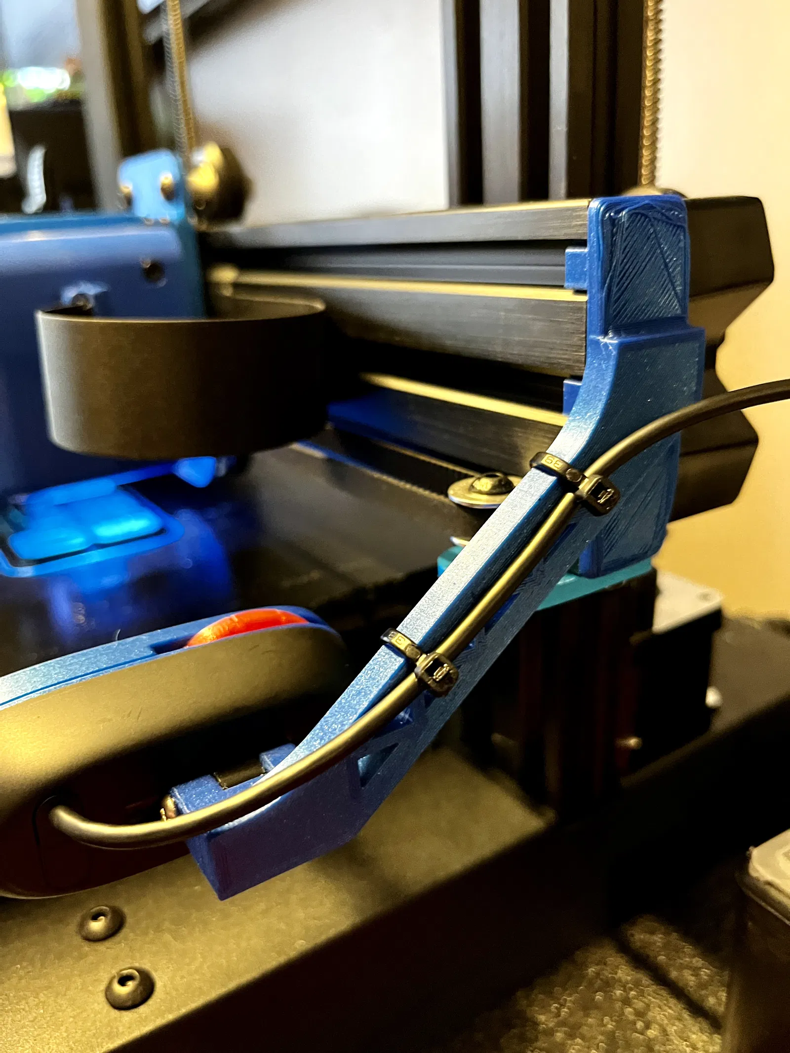 Tôi lấy cảm hứng cho giá đỡ này từ DerBrinkman trên Thingiverse: https://www.thingiverse.com/thing:4098521 nhưng tôi muốn một cách gắn khác với bu lông M5 mà anh ấy đã sử dụng. Vì vậy, tôi đã chỉnh sửa cánh tay để sử dụng đầu nối chụp cuối thanh nhôm 2060 thay thế - nó được lắp khớp bằng lực đẩy, không cần dụng cụ nhưng bám khá chắc trên máy Artillery Genius Pro của tôi.