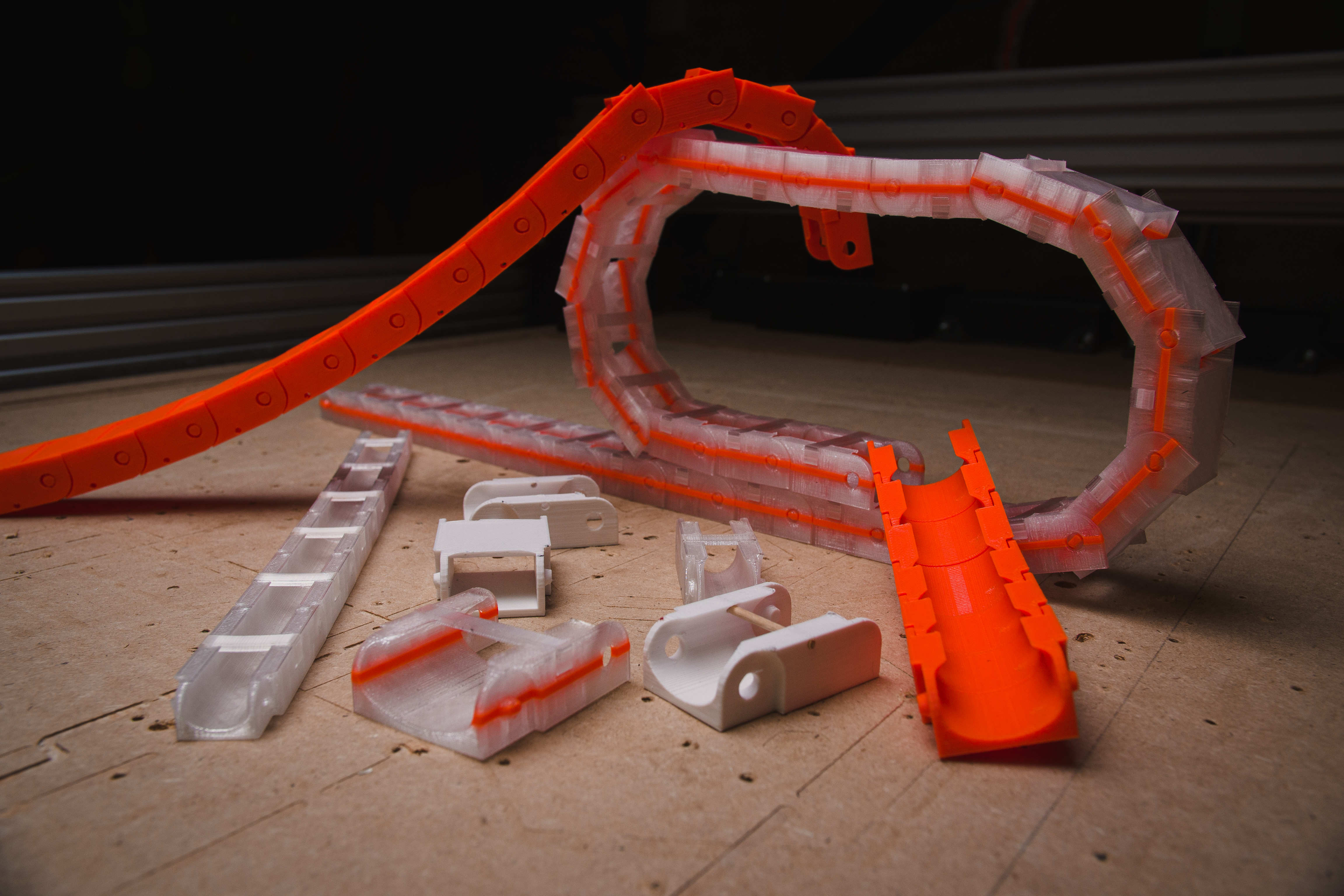 Tôi đã thêm Kẹp, vì tôi muốn Chuỗi kéo này cho CNC của mình và tôi không hài lòng với phiên bản tăm, vì sẽ quá khó để mở và đóng lại khi tôi muốn thêm thứ gì đó sau này. Phiên bản đóng cũng không phải là một lựa chọn cho tôi. Các kẹp có thể dễ dàng gắn vào và tháo ra (có thể cần tua vít đầu phẳng). Tôi đã sử dụng Chuỗi kéo này (in bằng PETG) trên CNC của mình được gần một năm nay, và cho đến nay tôi chưa gặp phải vấn đề gì.