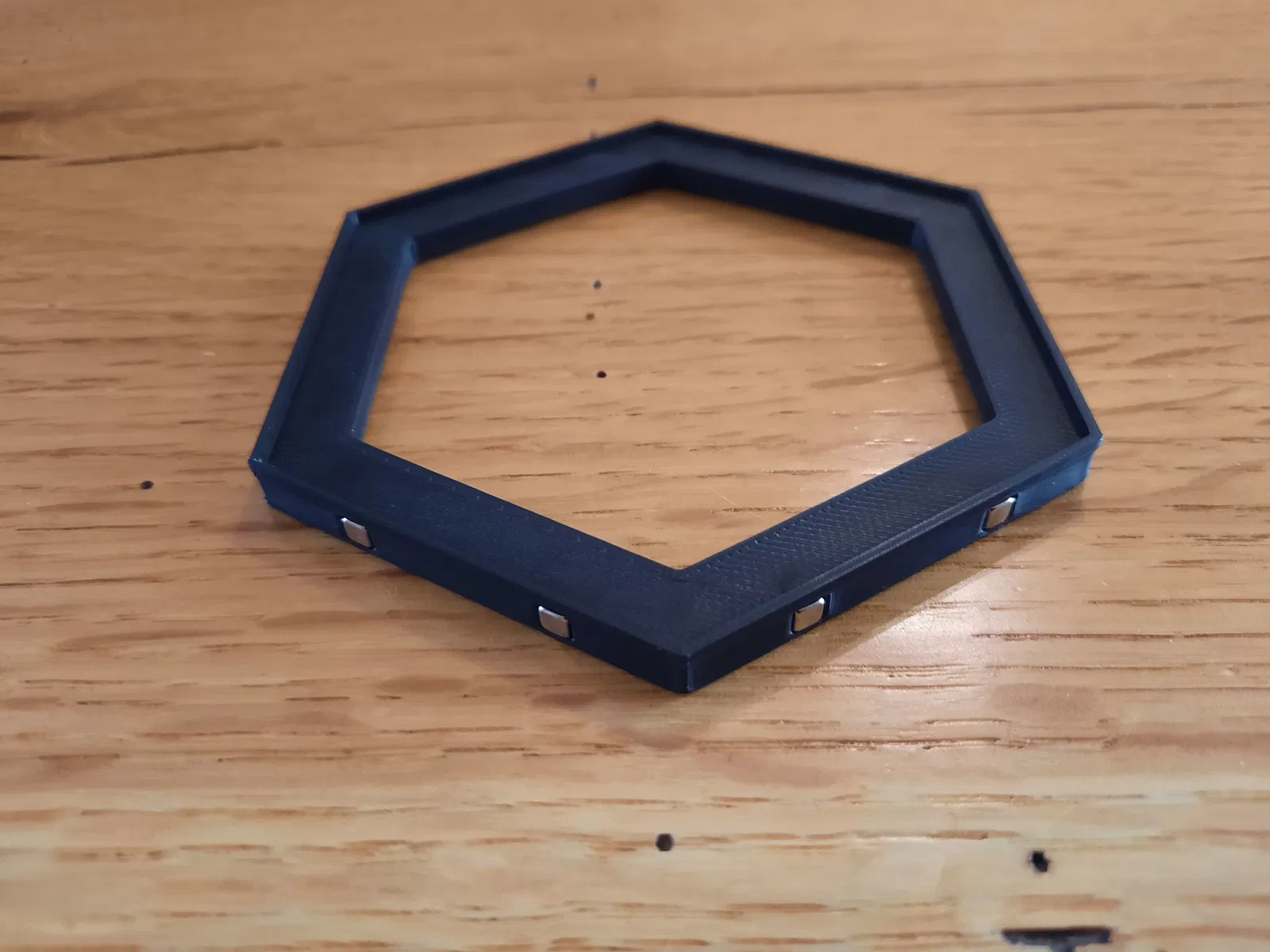 Lục giác Nam châm cho Catan, được thiết kế lại để in với nam châm 3mm. Hướng dẫn chi tiết cách lắp nam châm và cài đặt in tối ưu.