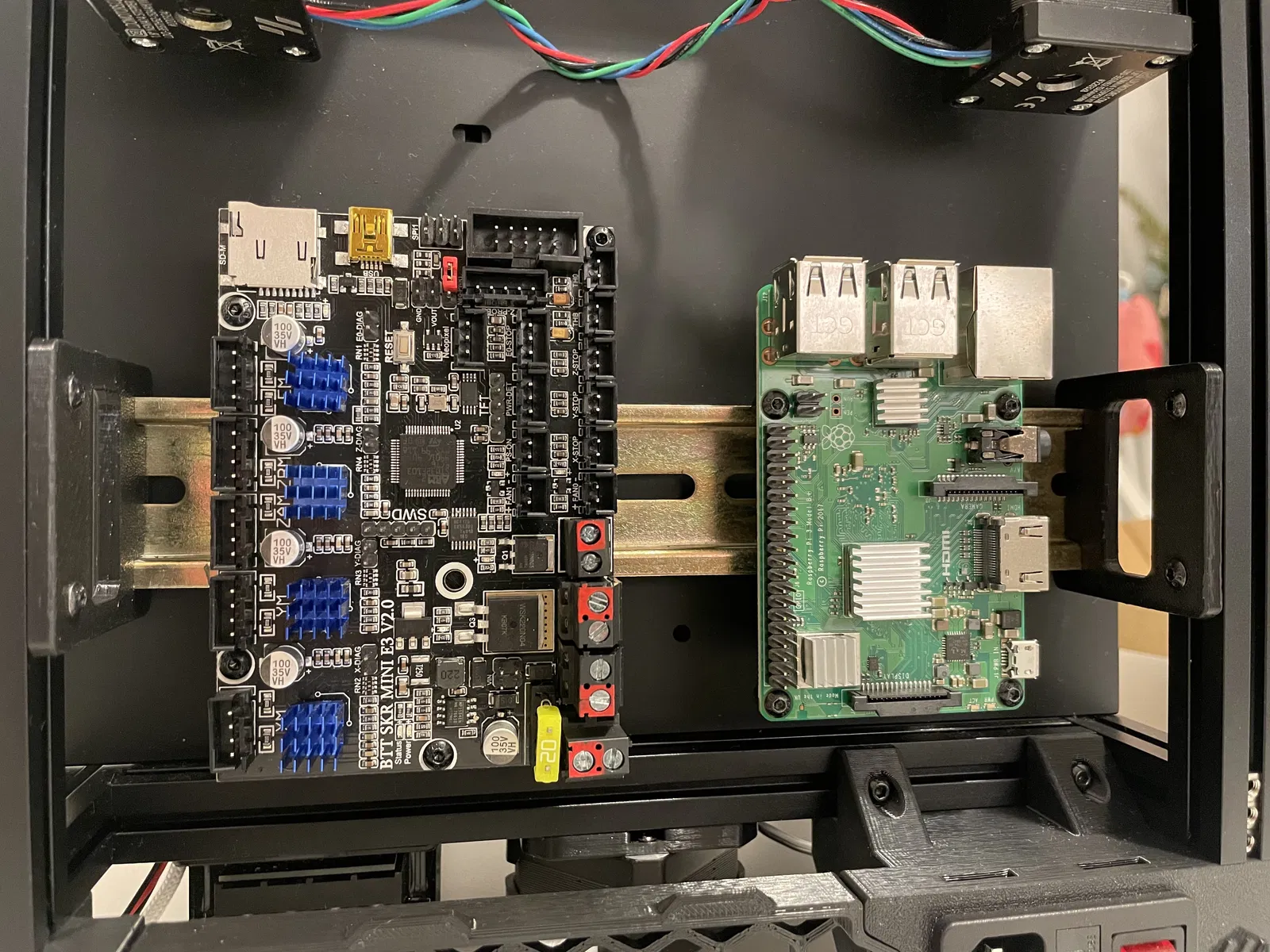 Một hệ thống lắp đặt mạnh mẽ và có thể điều chỉnh cho Voron V0, cho phép gắn các bo mạch BTT SKR và Raspberry Pi vào khu vực bảng điều khiển phía sau. Tích hợp ray DIN, có thể điều chỉnh vị trí dọc và ngang, thiết kế mỏng.