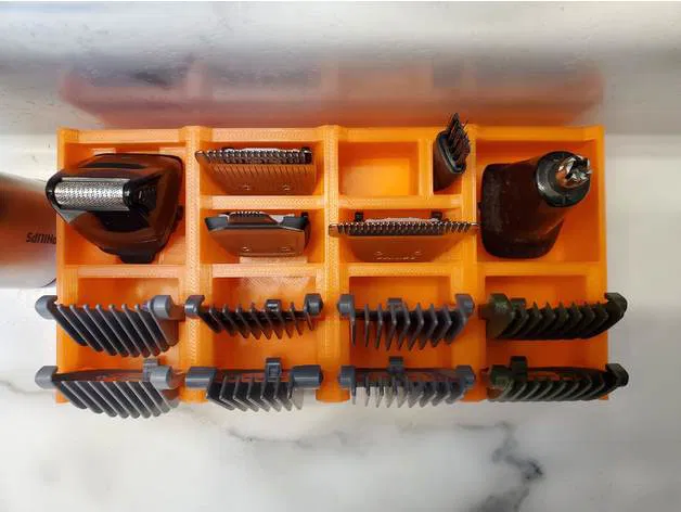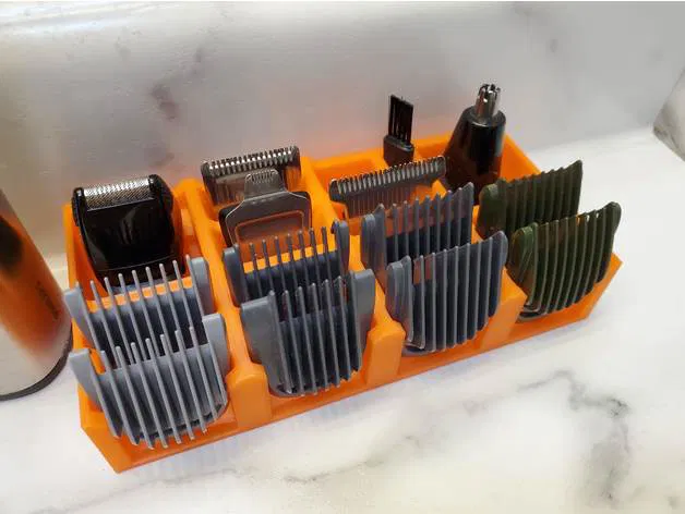 Tôi nhận ra rằng tôi không cần các lược cắt tóc ngồi trên quầy của mình mọi lúc. Giờ đây, có một khay lược cắt tóc riêng (được tải lên ở các kích thước 1x3 và 2x3) phù hợp với khay đựng phụ kiện chính. Nếu muốn, bạn có thể kết hợp chúng và in tất cả thành một khối.