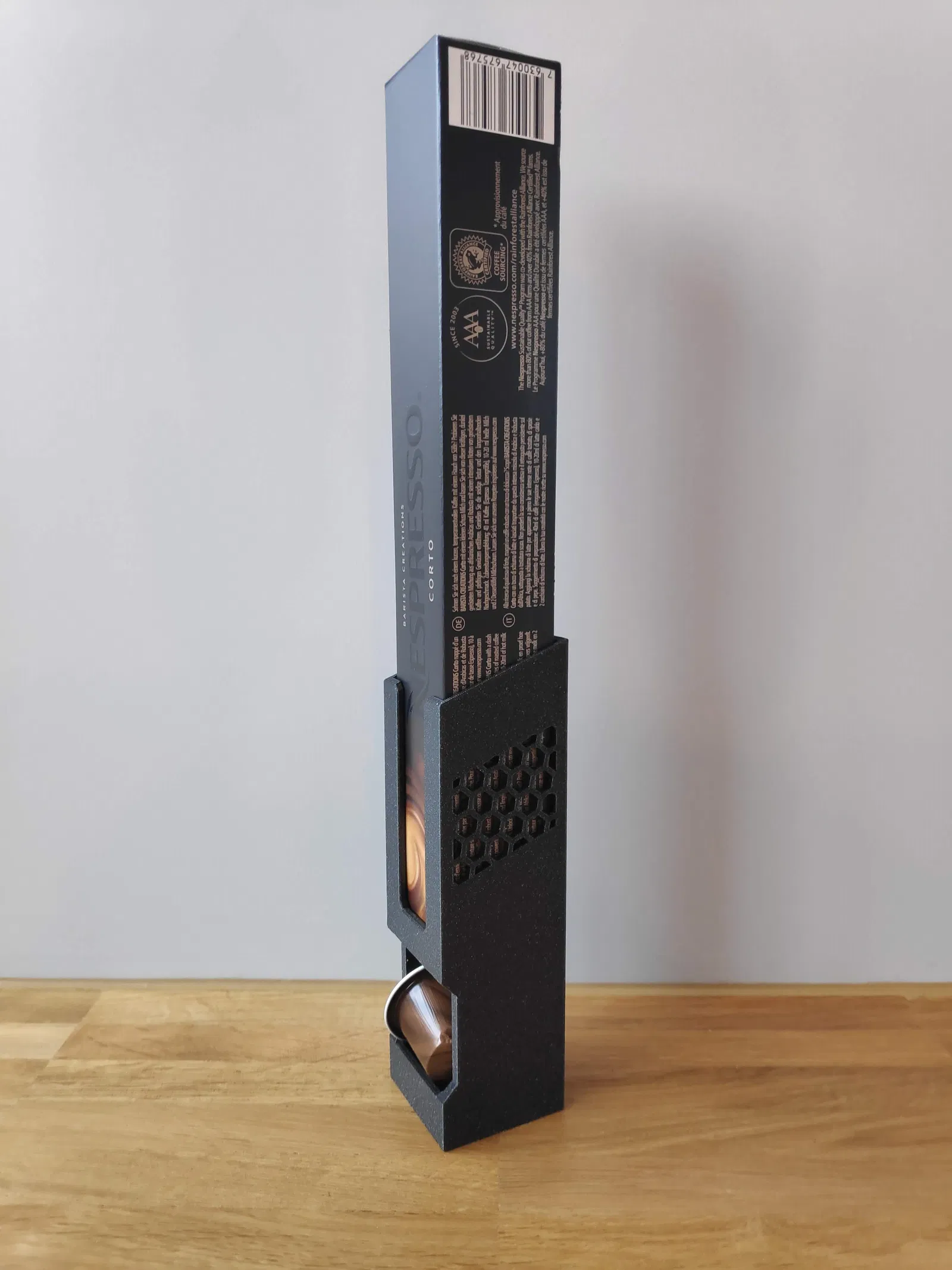 Thiết kế và in bộ phân phối viên nang Nespresso tùy chỉnh của riêng bạn. Dễ dàng lấy viên nang, nạp lại tiện lợi và đế cắm chắc chắn. Hướng dẫn in chi tiết với cài đặt Prusament PLA.
