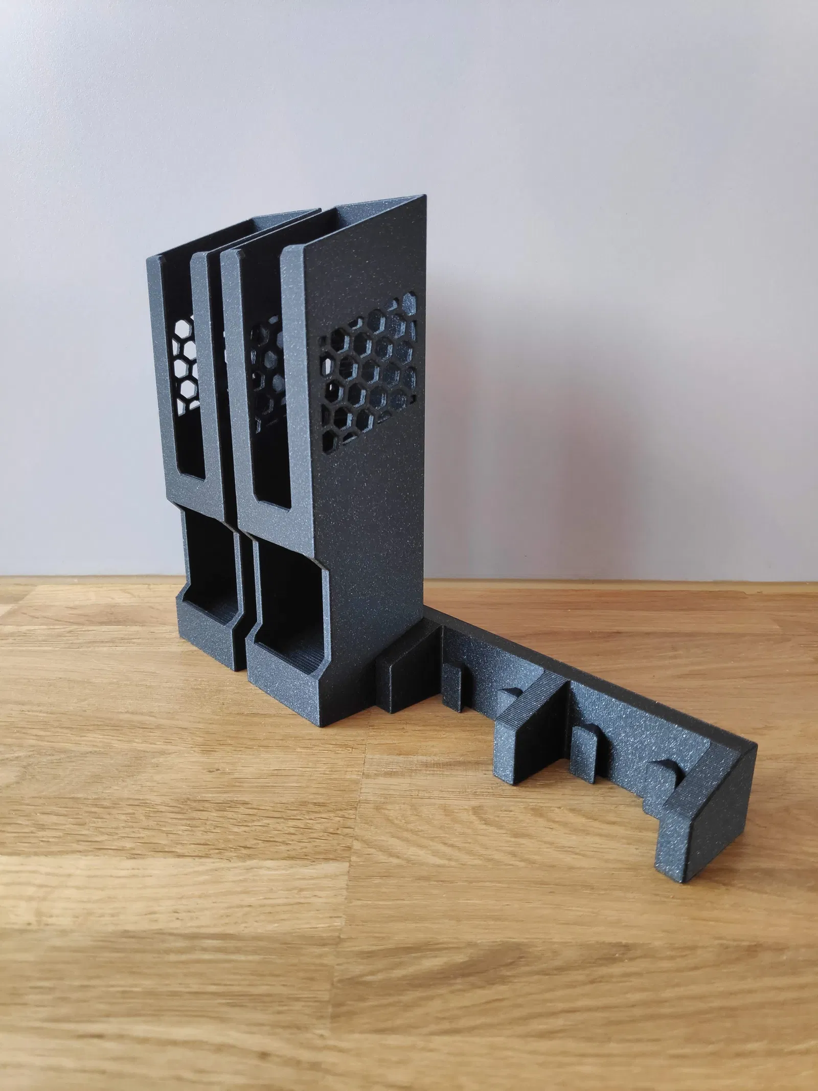 Đế Cắm Có 4 loại đế cắm khác nhau để giữ từ 1-4 bộ phân phối. Một khớp đuôi én kết nối hai phần và giữ chúng cố định. Dung sai/độ hở của khớp là 0,08 mm, có vẻ là điểm ngọt ngào giữa việc vừa khít và có thể tháo rời hai phần mà không tốn nhiều công sức. Nếu bạn chỉ in một bộ phân phối, bạn thậm chí không cần đế cắm. Nó đã tỏ ra khá ổn định.