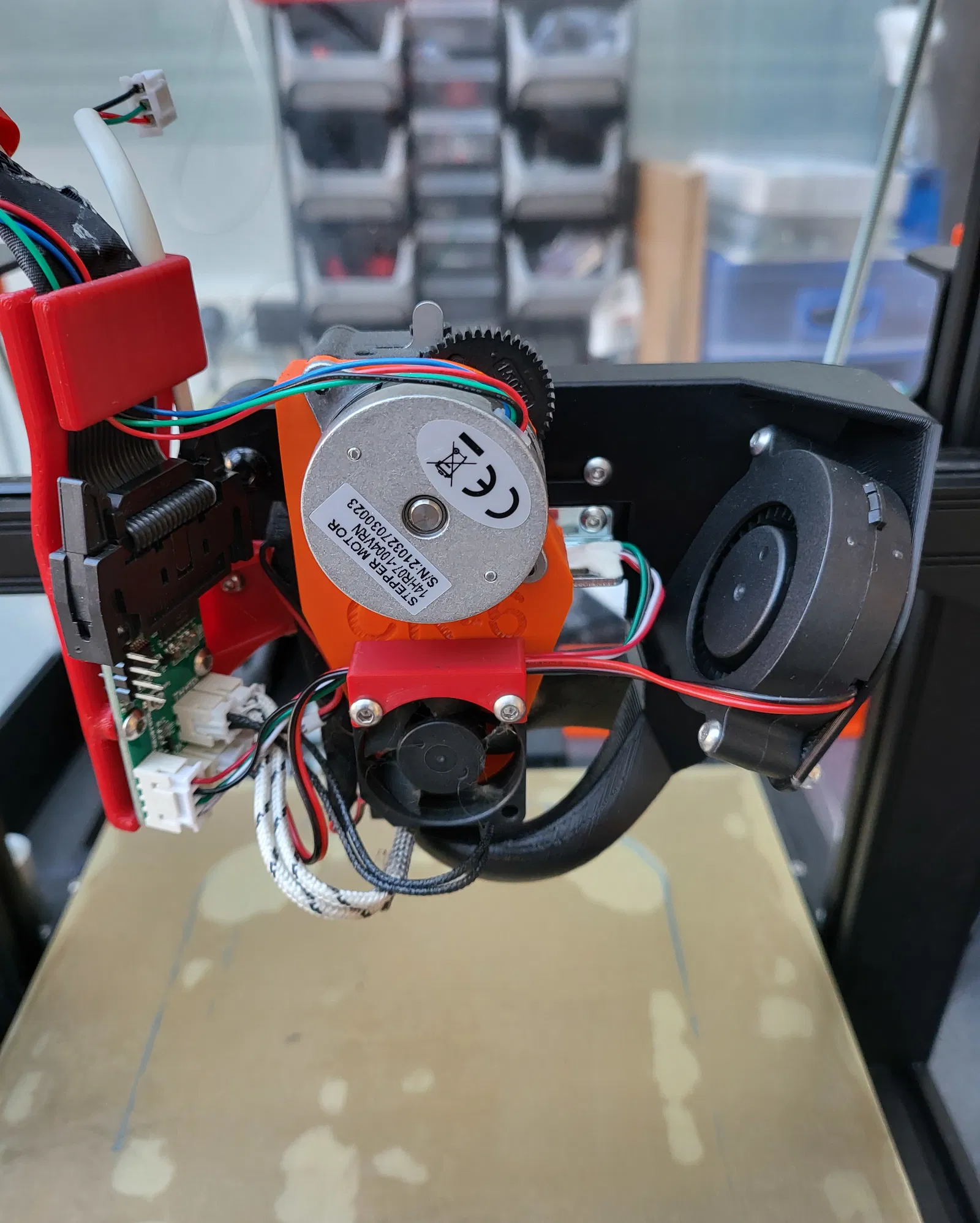 - Đổ đầy 20% dạng gyroid ### Lắp đặt: Tháo vỏ quạt tản nhiệt bộ phận bằng kim loại và quạt tản nhiệt bộ phận 4010 nguyên bản. Chúng không thể được sử dụng kết hợp với bất kỳ quạt nào lớn hơn 4010. Lắp quạt 5015 bằng 2 bu lông và đai ốc M3 x 20 mm. Vỏ quạt trượt lên tấm đỡ và vừa với chốt ngay dưới trục của bánh xe đỡ. Cố định bằng một bu lông M3 duy nhất. Vị trí tối ưu mà tôi xác định trên thiết lập của mình là từ 50% đến 75% khe trượt của giá đỡ về phía tối đa mà bạn có thể trượt vỏ quạt lên giá đỡ. Vị trí tối đa hoàn toàn thẳng hàng tâm của các cửa thoát khí với đầu phun. Vì chúng ta không thể in một cửa thoát khí có góc 90° hoàn hảo (ít nhất là không có hỗ trợ) với đầu phun, nên một độ lệch nhỏ là lý tưởng. Mẫu có adapter Bowden không thể trượt lên giá đỡ vì adapter Bowden giới hạn chuyển động của nó. Đảm bảo ống Bowden trượt qua mà không bị gấp. ### Sử dụng: Tốc độ 3500 đến 4000 vòng/phút là đủ để in PLA. Đối với hầu hết các quạt, điều này sẽ tương đương 70% đến 75% tốc độ tối đa của chúng. Đối với các cầu nối và chi tiết in nhô ra, đặt quạt ở 100% để tận dụng khả năng làm mát tăng cường (tốc độ quạt cầu nối trong PrusaSlicer và tốc độ quạt thử nghiệm/cầu nối trong Cura). Cũng trong PrusaSlicer, bật chức năng tự động làm mát và trong Cura, đặt tốc độ quạt tối đa là 100%, ngưỡng tốc độ quạt thông thường/tối đa là 15 giây và thời gian lớp tối thiểu là 7 giây. Điều này sẽ tăng tốc các bản in rất nhỏ. ### Chỉnh sửa 2022 04 06: * Tăng 2 mm khoảng hở của các cửa thoát khí của quạt với tất bịt đầu nóng. Một số người dùng báo cáo rằng quạt chạm vào bịt đầu nóng ở 1 bên (có vẻ như không phải tất cả các bộ phận đo ứng suất đều song song hoàn hảo với bàn máy in).