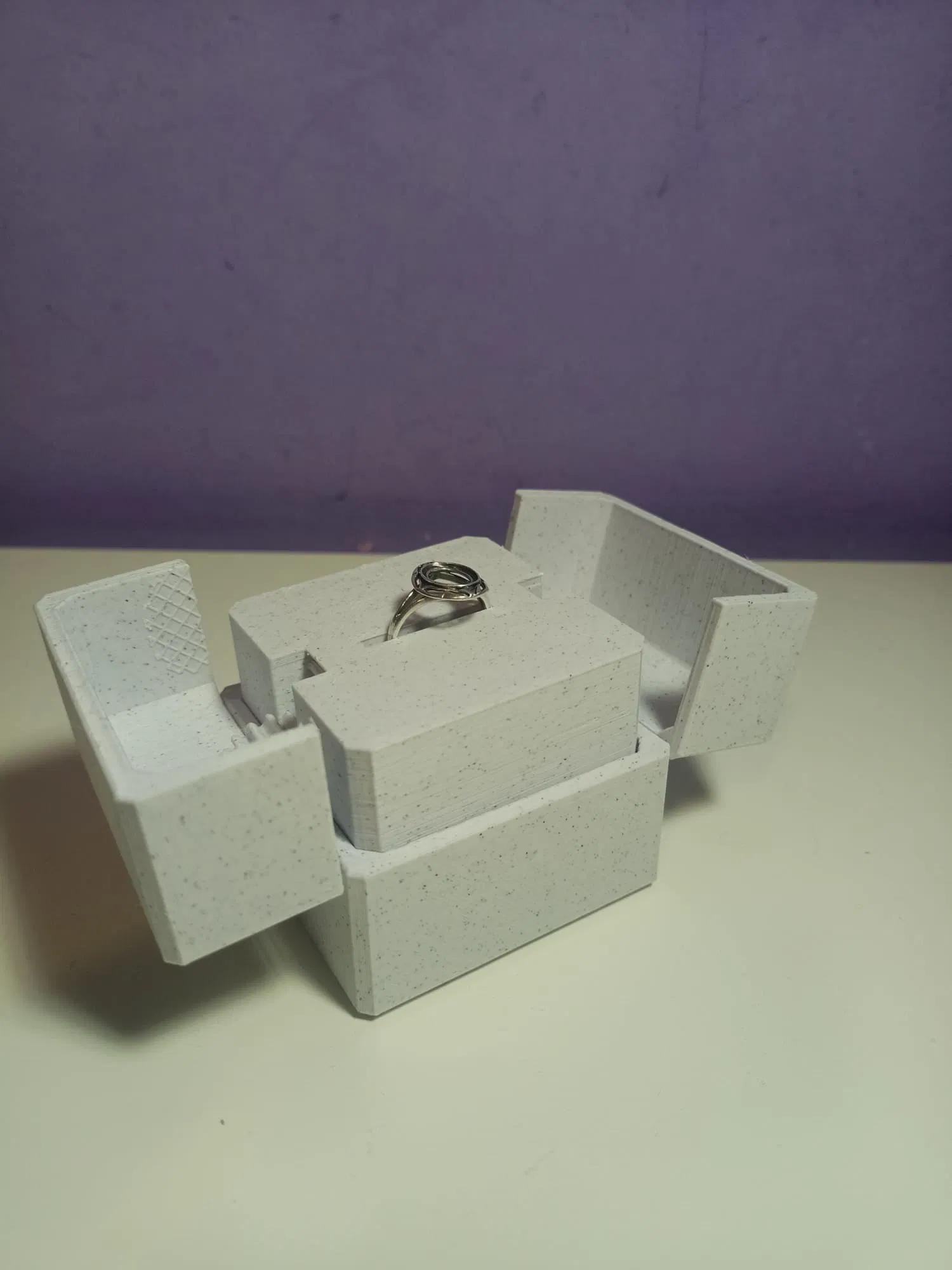 Hộp nhẫn đính hôn độc đáo với cơ chế thông minh, giúp chiếc nhẫn của bạn được nâng lên một cách ấn tượng ngay khi mở hộp. Hoàn hảo cho lời cầu hôn lãng mạn.