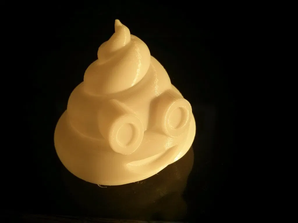 Thiết kế Biểu tượng Phân với phần đáy kín và tâm đặc giúp in nhanh hơn, không cần lớp độn. In bằng PETG, 0.2mm lớp, 0% infill, giảm một nửa thời gian in. Thiết kế gốc bởi DrLex.