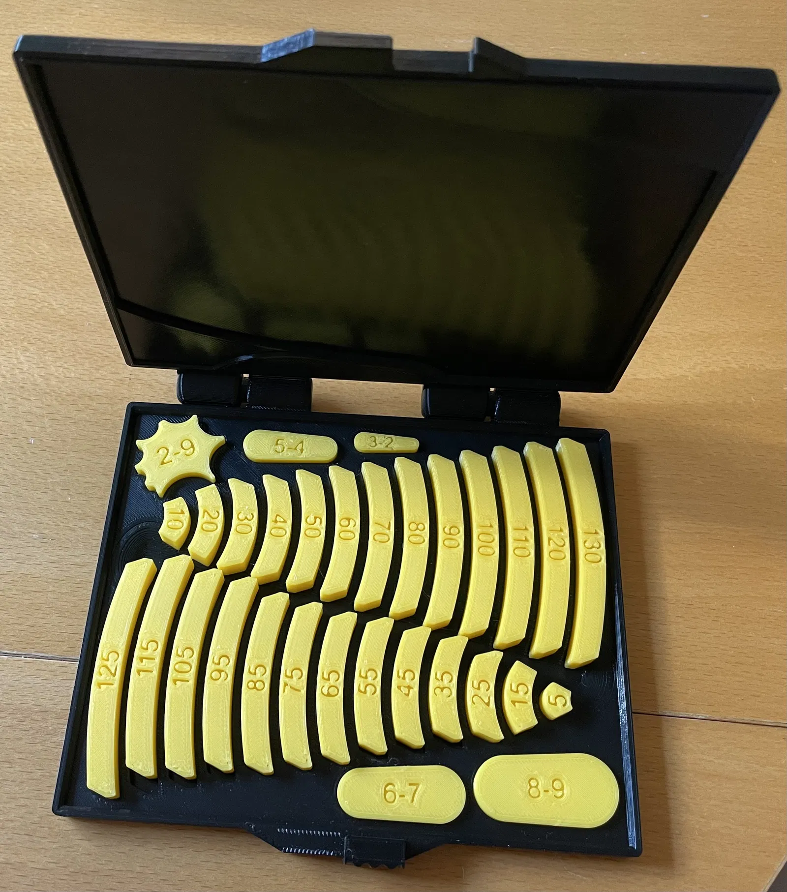 Đây là bộ dụng cụ đo bán kính và hộp đựng. Hướng dẫn cách in hộp đựng và các lưu ý khi in các dưỡng đo bán kính nhỏ để dễ dàng loại bỏ vật liệu hỗ trợ.