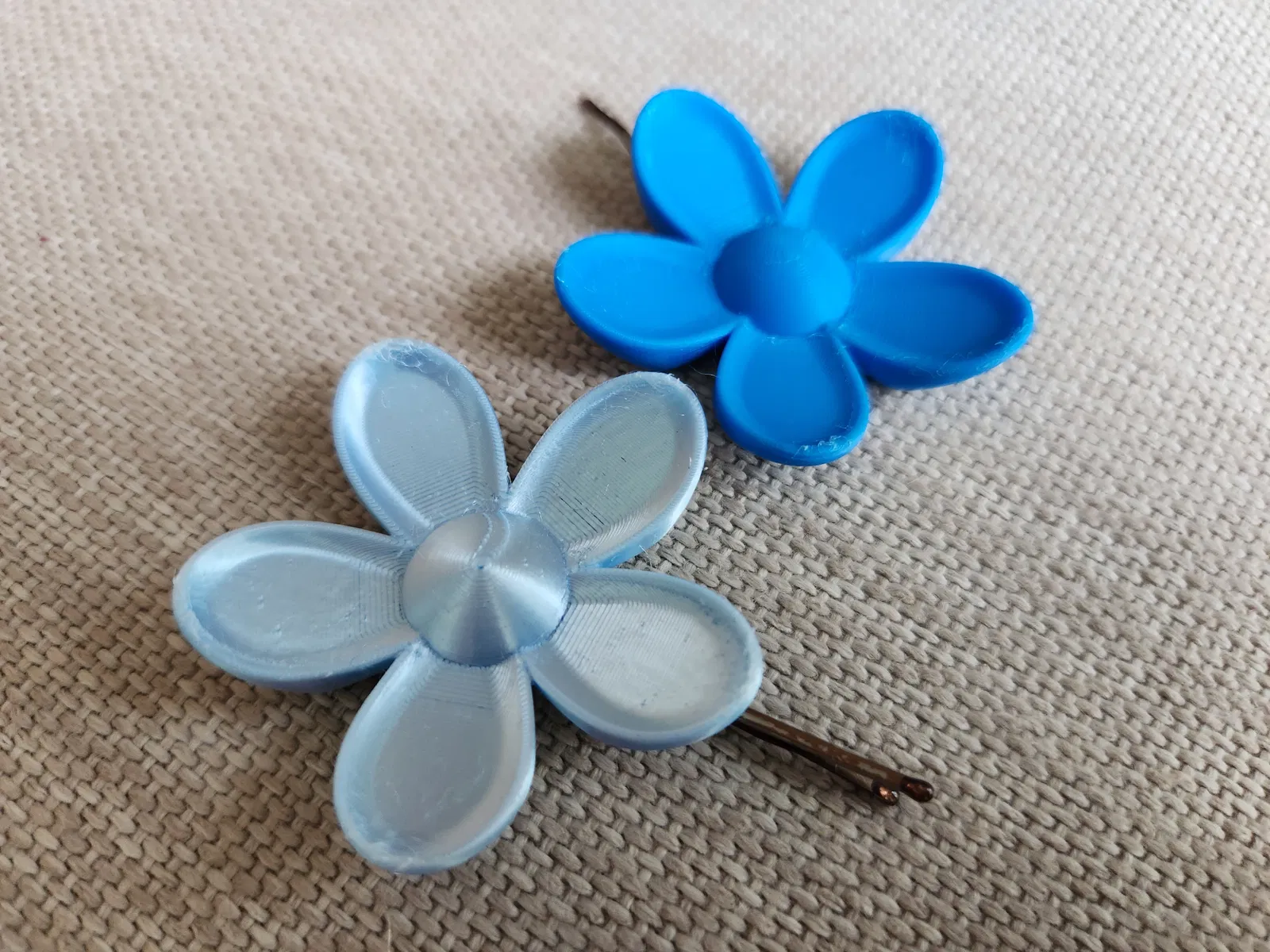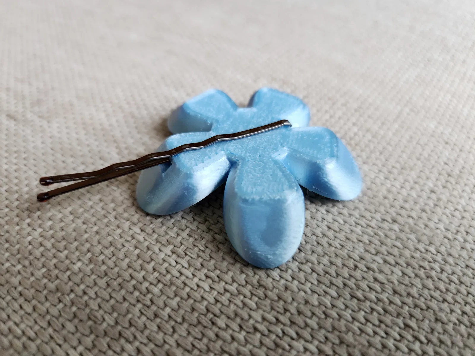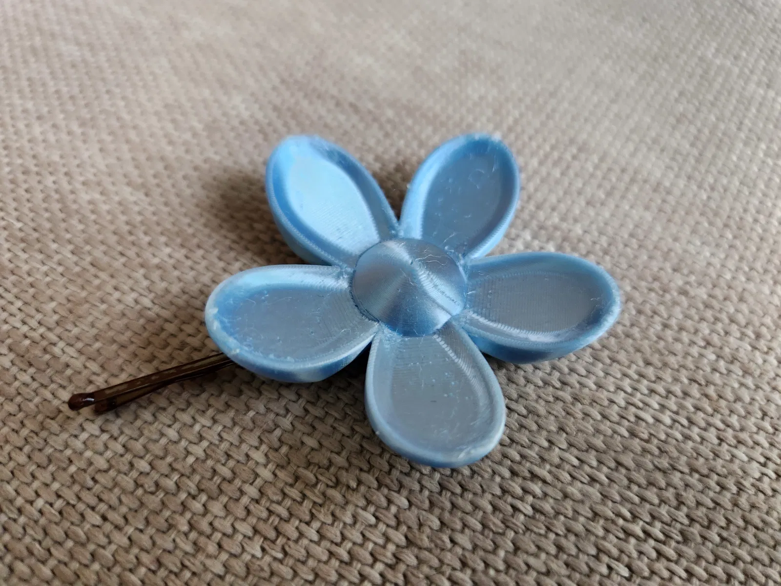 Một bông hoa nhỏ xinh kích thước dễ thương (dưới 5 cm đường kính) có thể dùng làm phụ kiện tóc bằng cách luồn ghim cài tóc tiêu chuẩn vào khe có sẵn.