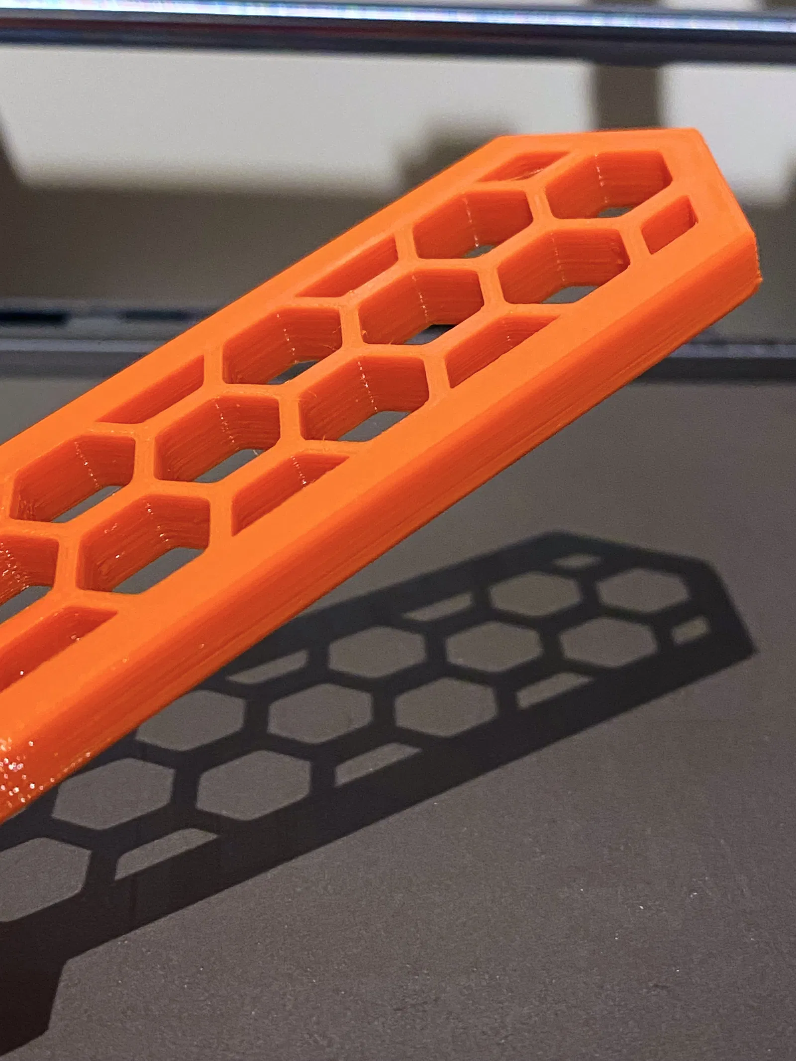 Tôi không tìm thấy cái cạp nào có hoa văn hình lục giác, rõ ràng là điều này phải được sửa. Hoàn hảo để cạp các bản in ra khỏi bàn in của bạn, cũng như cho các nhu cầu cạp khác của bạn. Nên in với chiều cao lớp .15 hoặc nhỏ hơn để làm cho cạnh đủ sắc để luồn dưới bản in của bạn. Móc tương ứng: prusaprinters.org/prints/129028-tool-hook-for-i3-mk3s