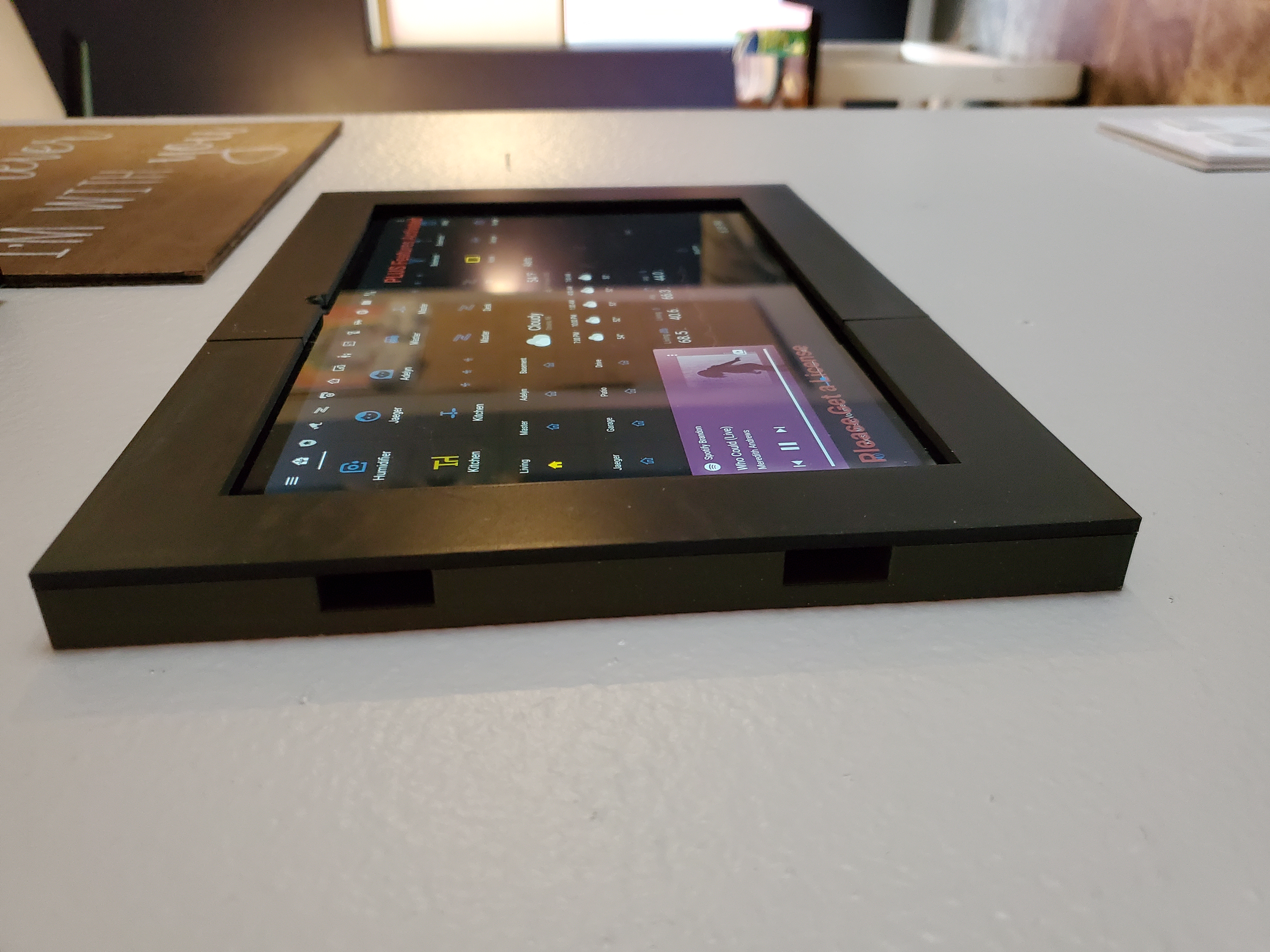 Giá treo tường cho máy tính bảng Tab A7 để chạy Home Assistant. Bản dựng bốn mảnh cho phép tháo máy tính bảng khỏi tường mà không cần tháo hoàn toàn vỏ. Một mảnh đế gắn vĩnh viễn vào tường bằng vít, trong khi mảnh đế thứ hai trượt vào mảnh đế đã gắn. Hai mảnh phía trước giữ máy tính bảng tại chỗ bằng cách "kẹp" vào các mảnh đế thông qua các chốt/lỗ. Mặc dù chúng tôi khuyên bạn nên dán các mảnh phía trước vào các mảnh đế, nhưng các chốt có thể giữ chắc. Một lần nữa, thiết kế là như vậy nếu các đỉnh được dán vào đế thì vỏ có thể trượt ra để tháo máy tính bảng. Khi đối diện với vỏ, các lỗ ở bên trái dành cho loa, các lỗ ở trên cùng cho phép truy cập nút nguồn và các lỗ ở bên phải dành cho loa và cáp sạc. Nên sử dụng cáp sạc 90 độ.