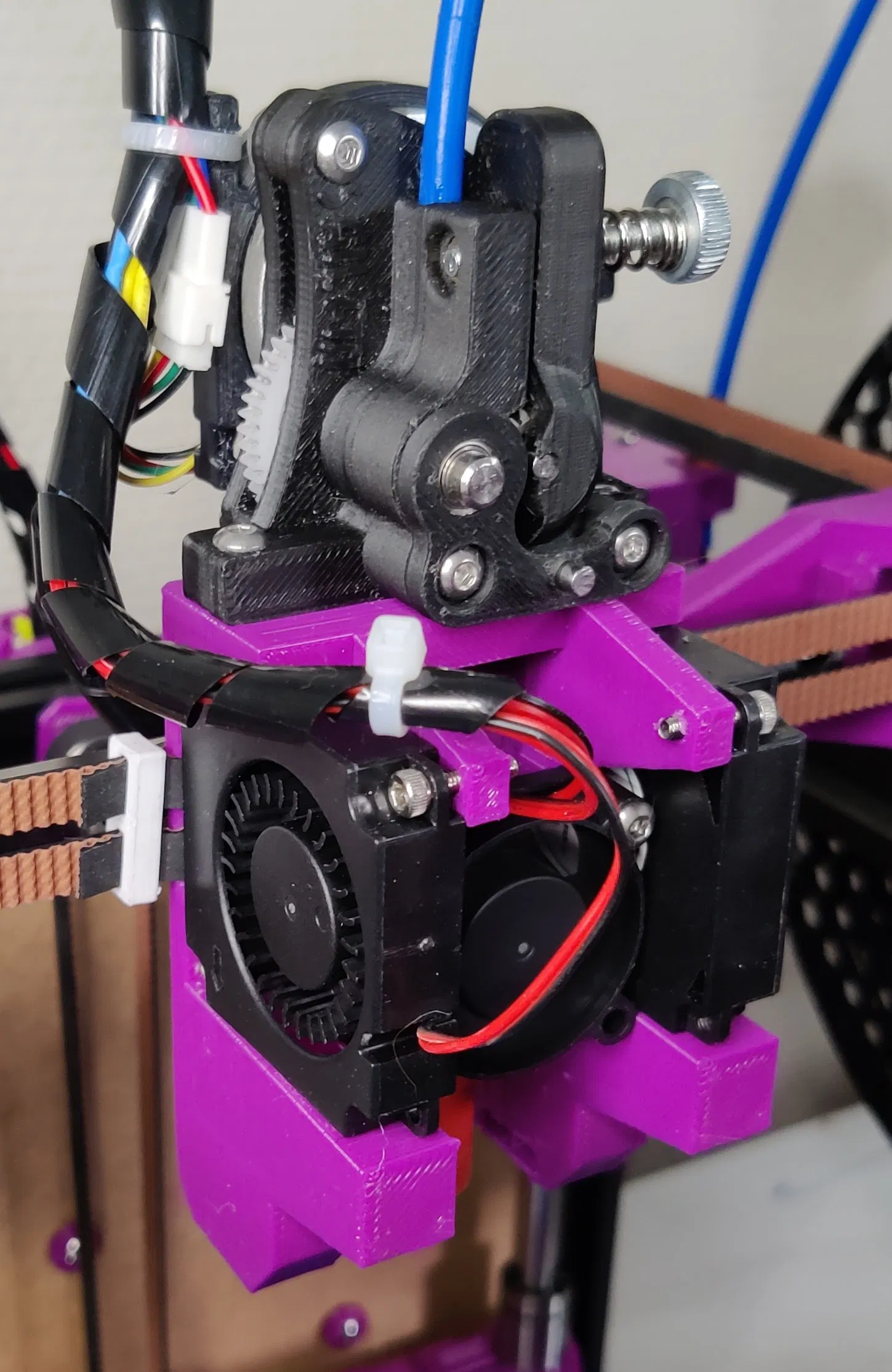 Lắp ráp: Vặn cụm đầu in vào xe đẩy của bạn trước, gắn dây curoa, sau đó gắn hotend, quạt 3010, 4010 và cuối cùng là extruder.