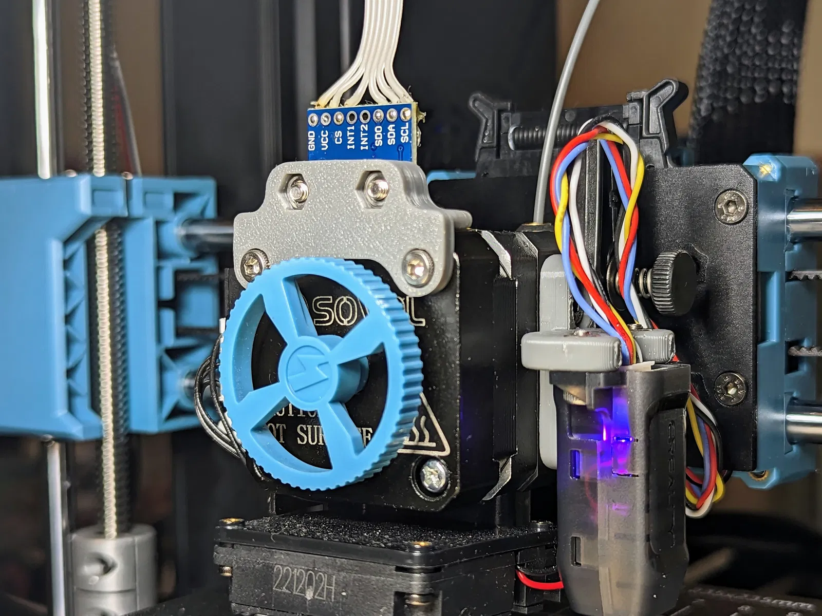 Các đai ốc M3 và vít M3 8mm được sử dụng để gắn cảm biến ADXL345 vào giá đỡ và các vít M3 20mm được sử dụng để gắn giá đỡ vào động cơ bước extruder vì các vít nguyên bản không đủ dài.