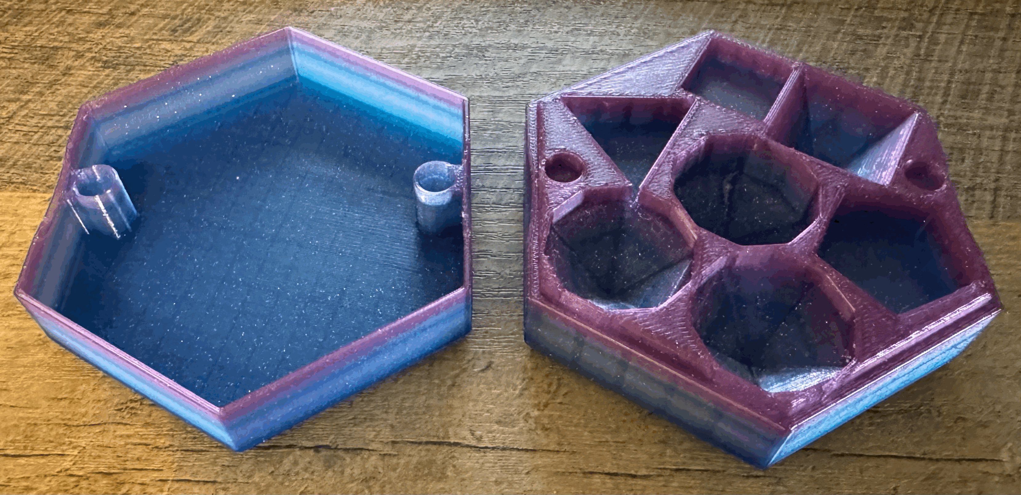 Đây là một chiếc hộp nhỏ gọn đựng 1 bộ xúc xắc RPG. Phiên bản này được cập nhật để hỗ trợ 6D 16.5mm. Sử dụng nam châm 6x3mm x4. Thích hợp cho Dungeons & Dragons và các trò chơi nhập vai khác.
