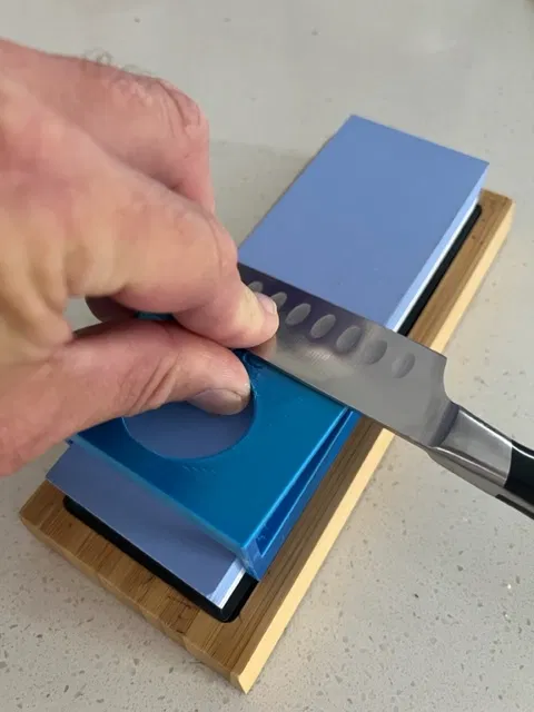 Khối đá mài (Whetstone block) được làm lại, dùng để trượt dao dọc theo khối đá, giữ đúng góc dao.