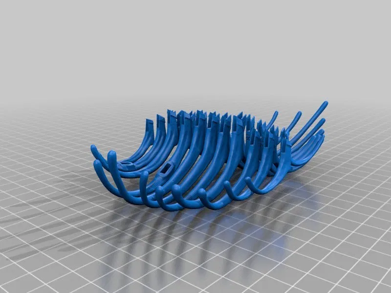 Tôi phát hiện ra rằng cách tốt nhất để in lồng ngực là in toàn bộ lồng ngực trên cạnh của nó với giá đỡ, cho mục đích này tôi đã tải lên tệp rib_cage.STL. Bạn phải bật Giao diện Giá đỡ (Support Interface) trong Cura, nếu không sẽ rất khó để gỡ bỏ lồng ngực khỏi giá đỡ một cách sạch sẽ. Tôi cũng đã bao gồm các xương sườn trái riêng lẻ.