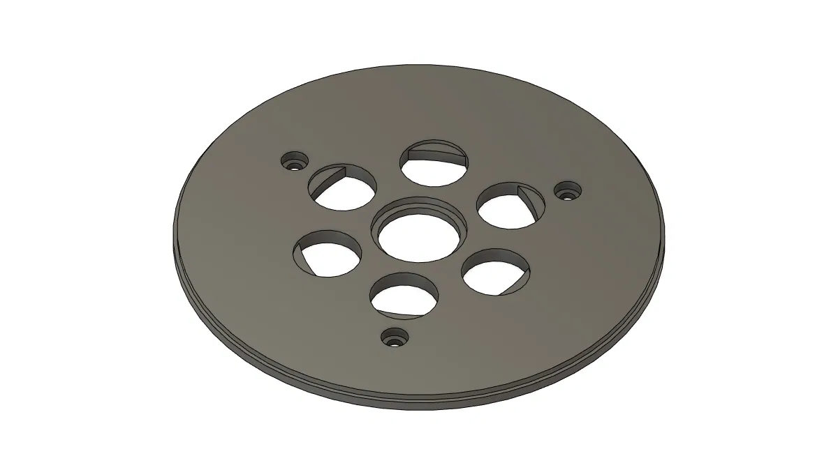 Tấm đế cho máy phay Porter Cable với đường kính tiêu chuẩn và lớn hơn. Thiết kế tấm đế lớn hơn (7,125 inch) cho bộ gá, cùng với phiên bản tiêu chuẩn (5,75 inch). Bao gồm cả tệp thiết kế Fusion 360 để tùy chỉnh.