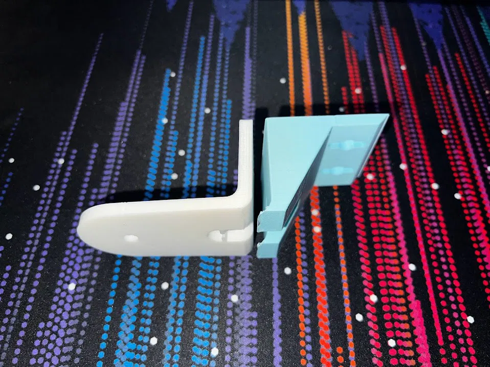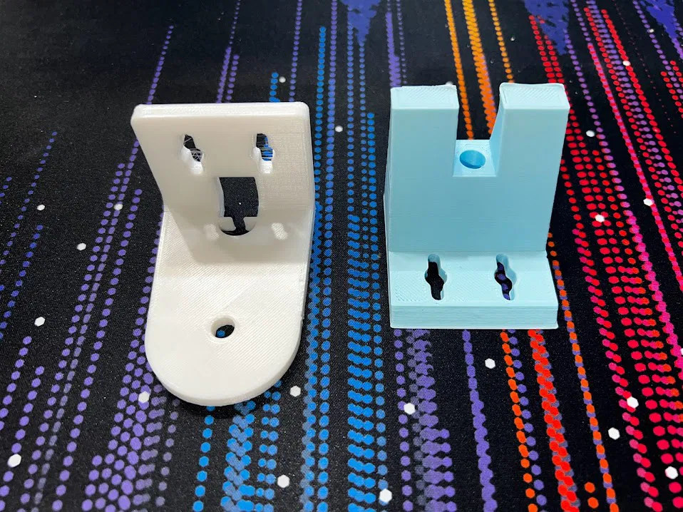 Giá đỡ này được in trên máy Monoprice Mini Select V2 mà không cần vật liệu hỗ trợ, bằng sợi PLA trắng và xanh thông thường.
