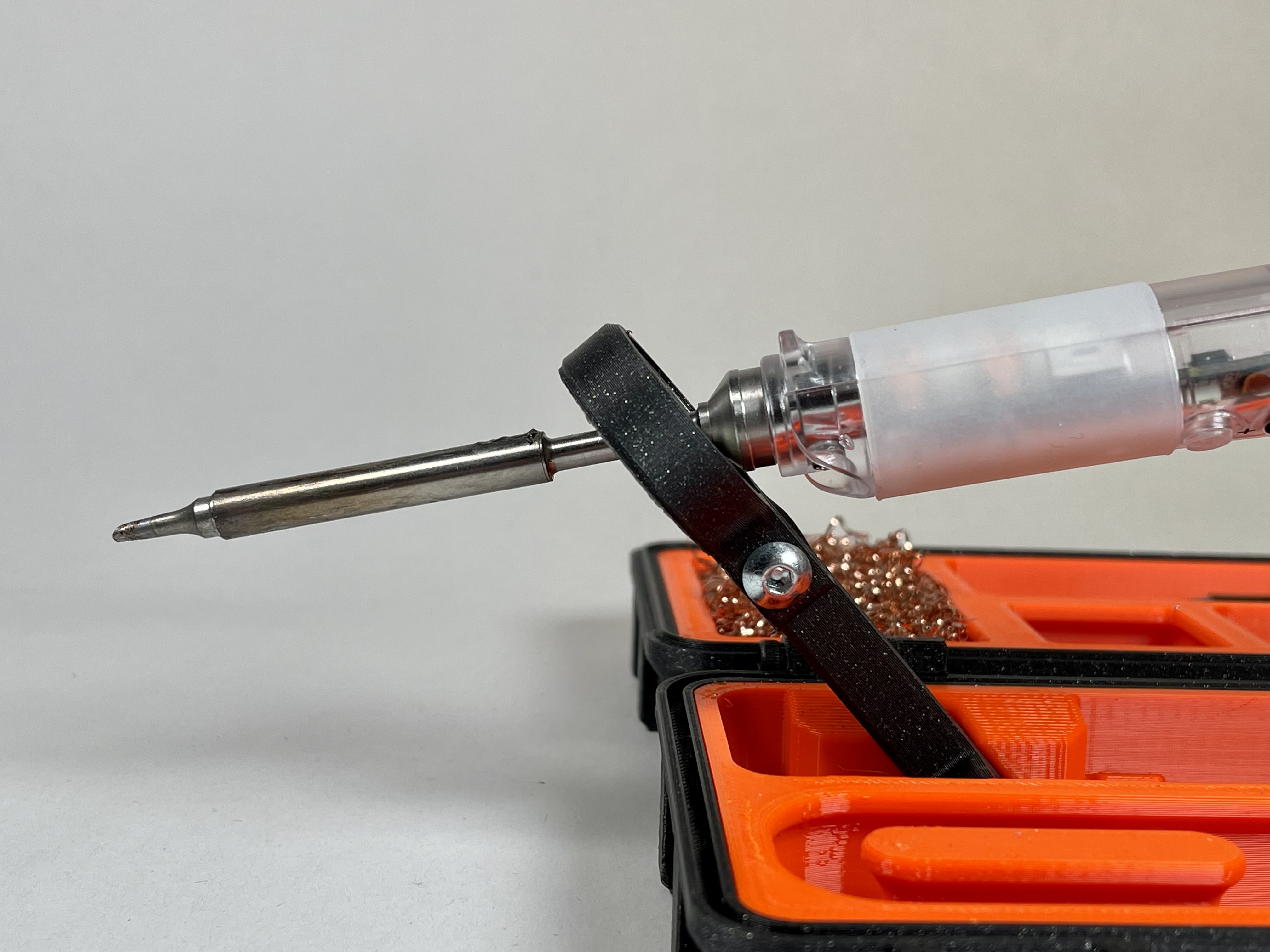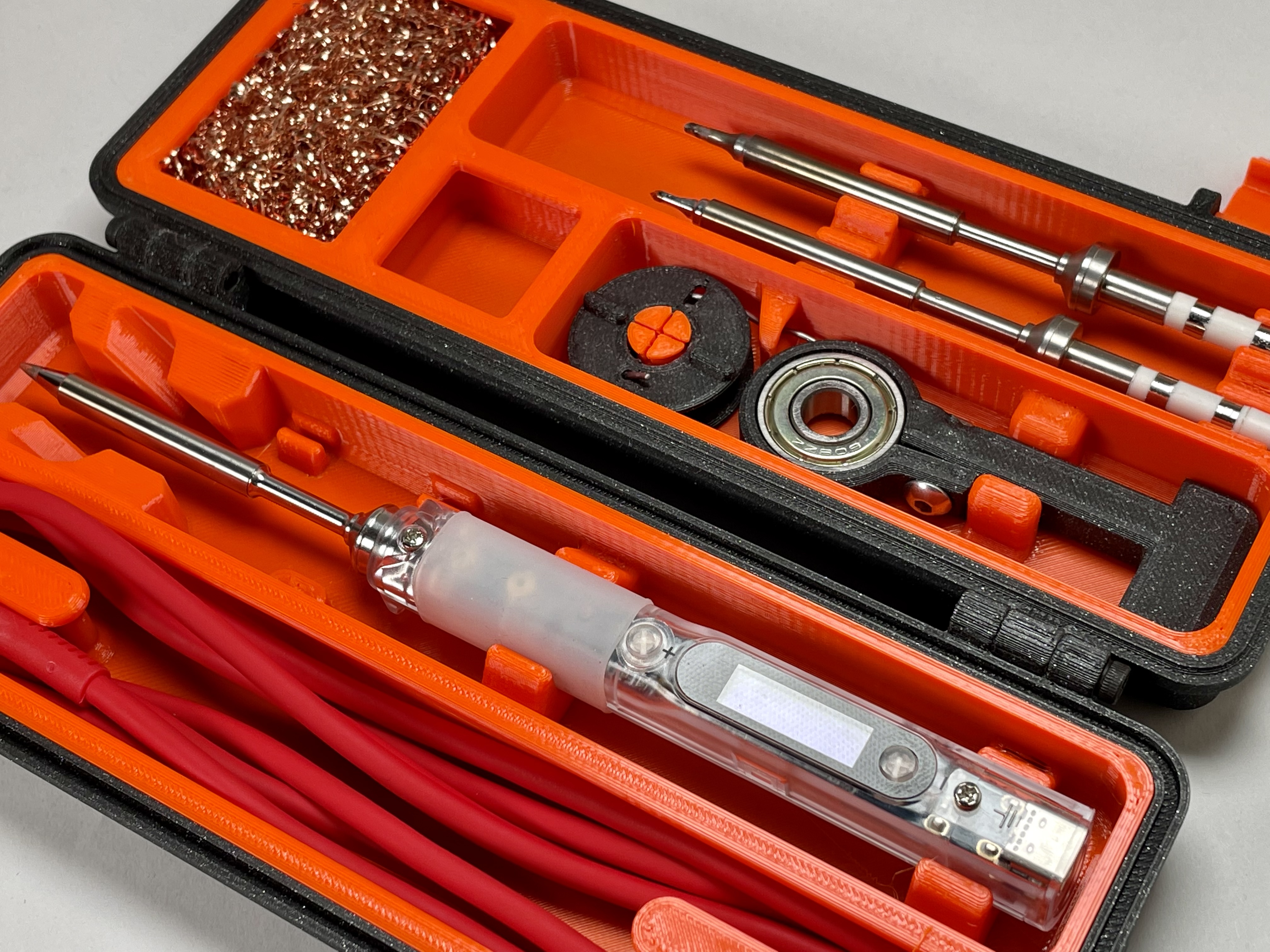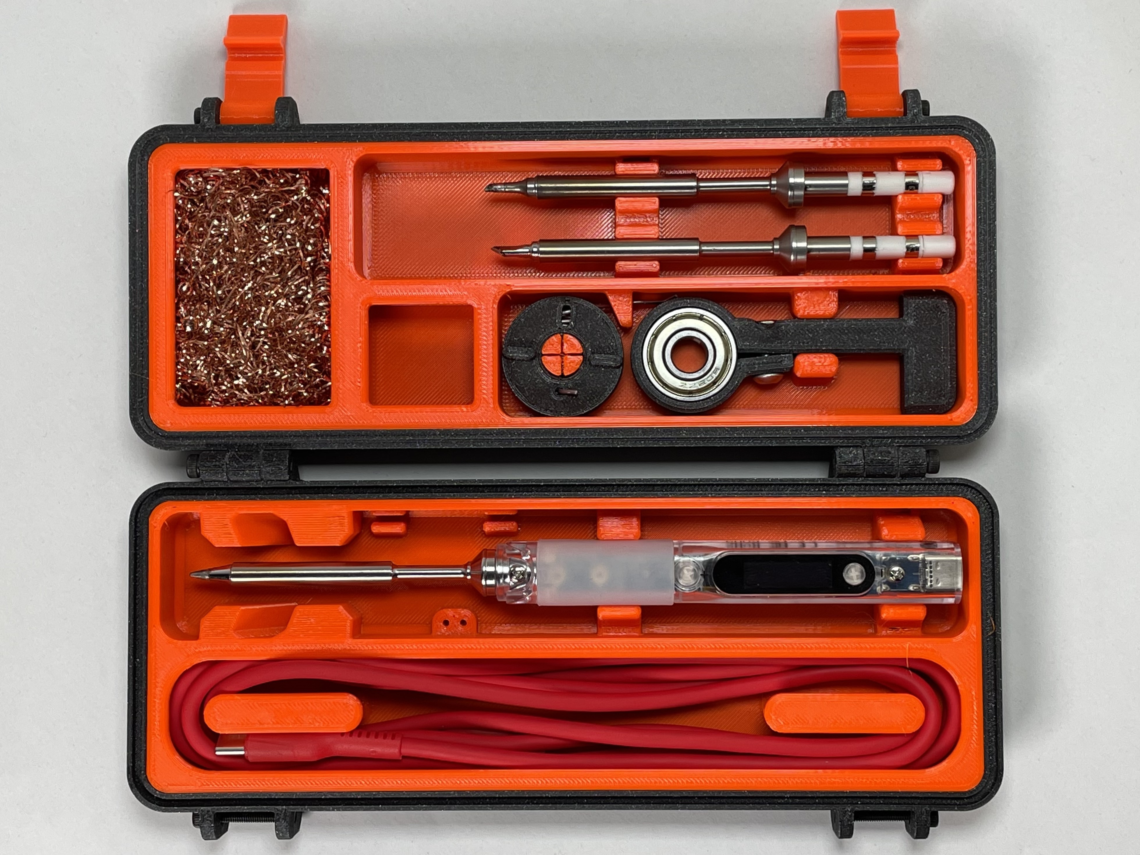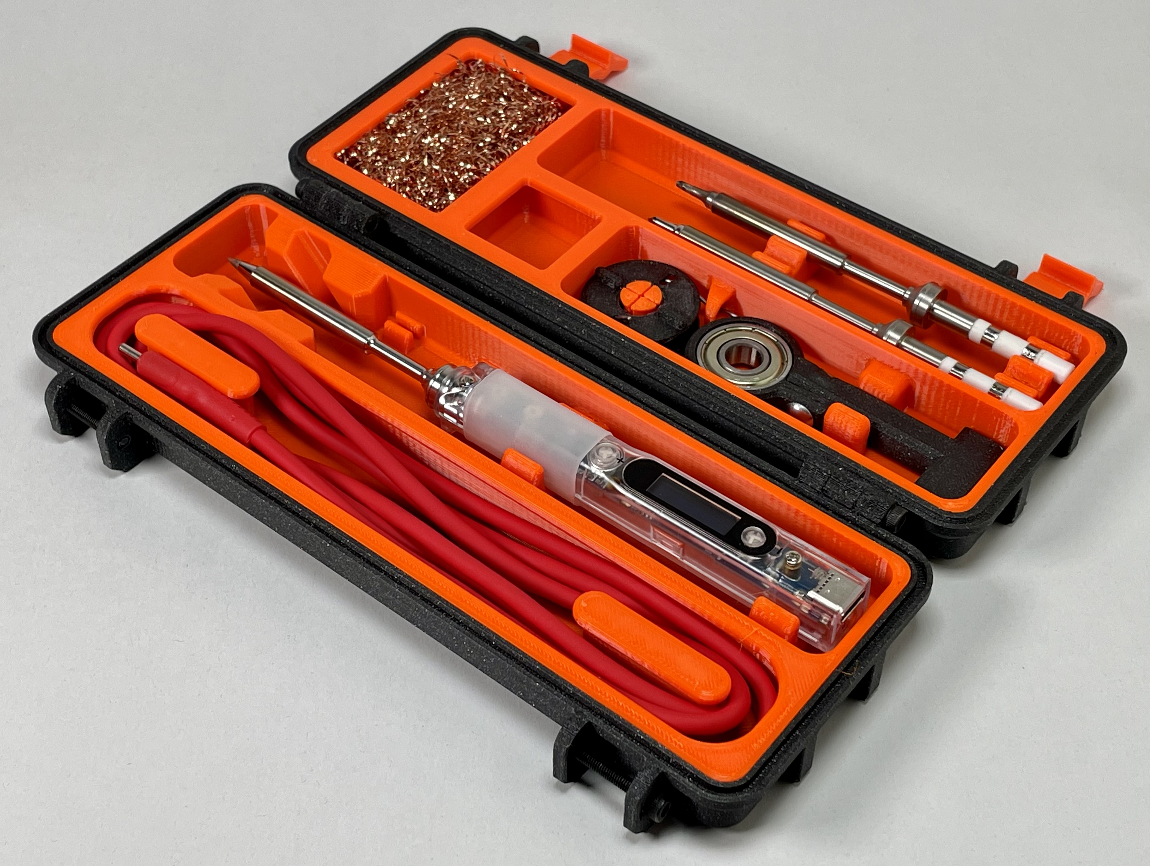Phiên bản 2 của hộp đựng đa phần chắc chắn dành cho mỏ hàn Pinecil/TS100/TS80, với các bộ phận chèn được thiết kế lại để tương thích hoàn toàn với các kích cỡ khác nhau. Bao gồm các tùy chọn in đa vật liệu và sửa lỗi bản lề.