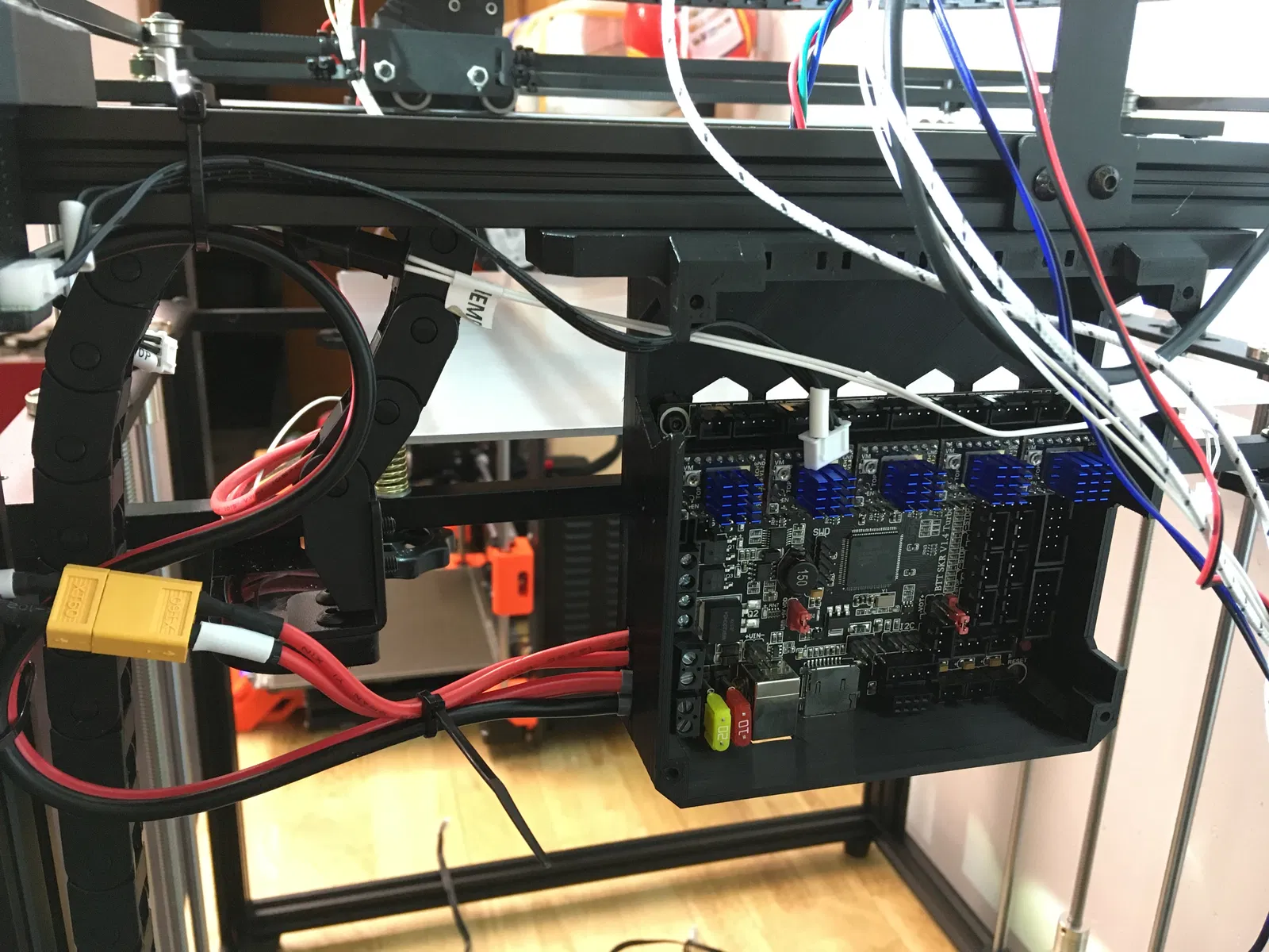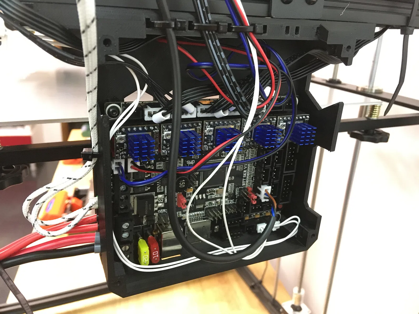 Bao gồm nhiều cổng cáp ở ba mặt. 5 khe giữ cáp ziptie ở cổng cáp phía trên (gần các cổng stepper motor). Rất thông thoáng.