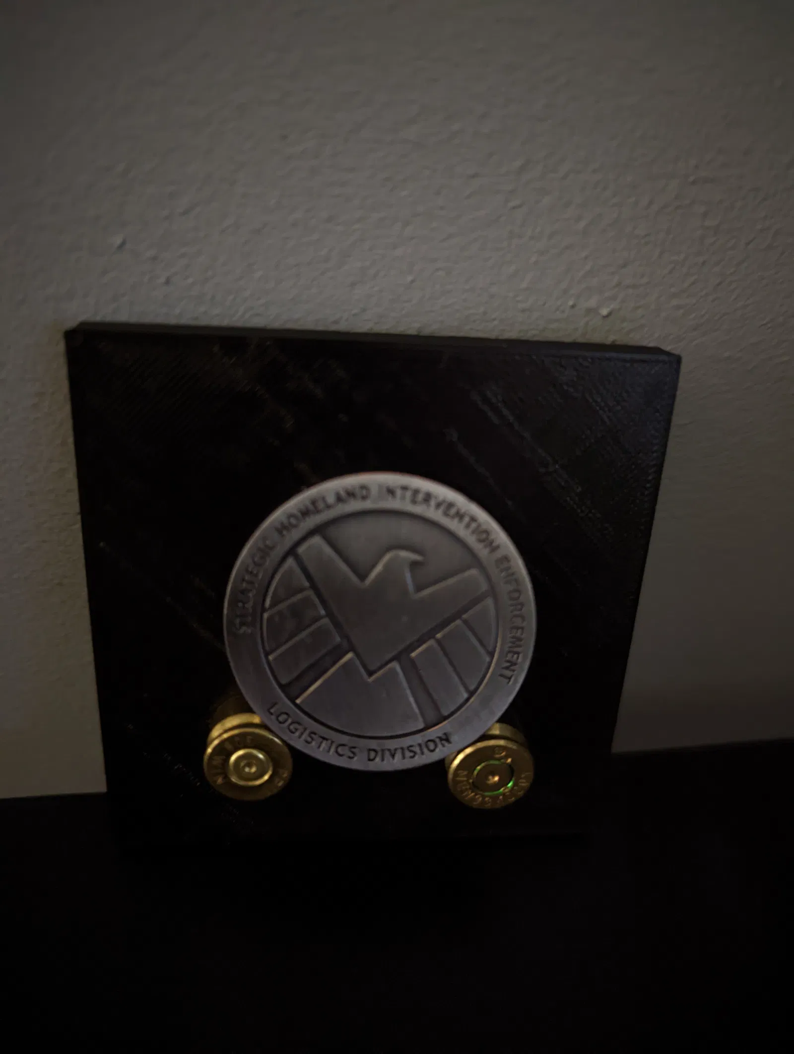 Giá treo tường có thể gắn lên tường này sử dụng vỏ đạn .308 để giữ đồng xu. Một cách độc đáo để trưng bày bộ sưu tập huy hiệu của bạn.