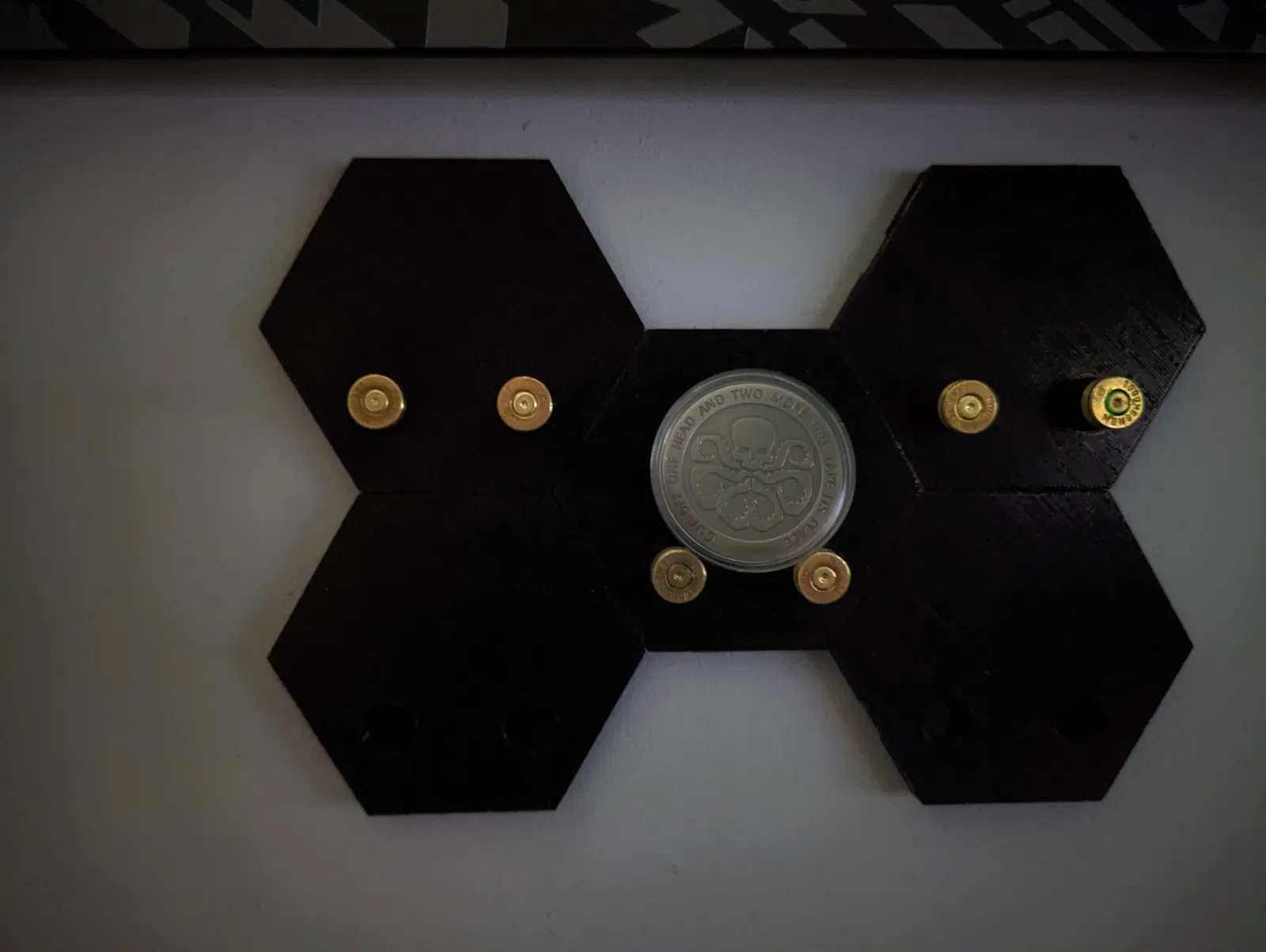 Phiên bản mô-đun của giá treo tường đồng xu thử thách. Giá đỡ đồng xu này sử dụng vỏ đạn .308 để giữ đồng xu cố định. Vỏ đạn được lắp dạng đẩy và không cần keo dán.