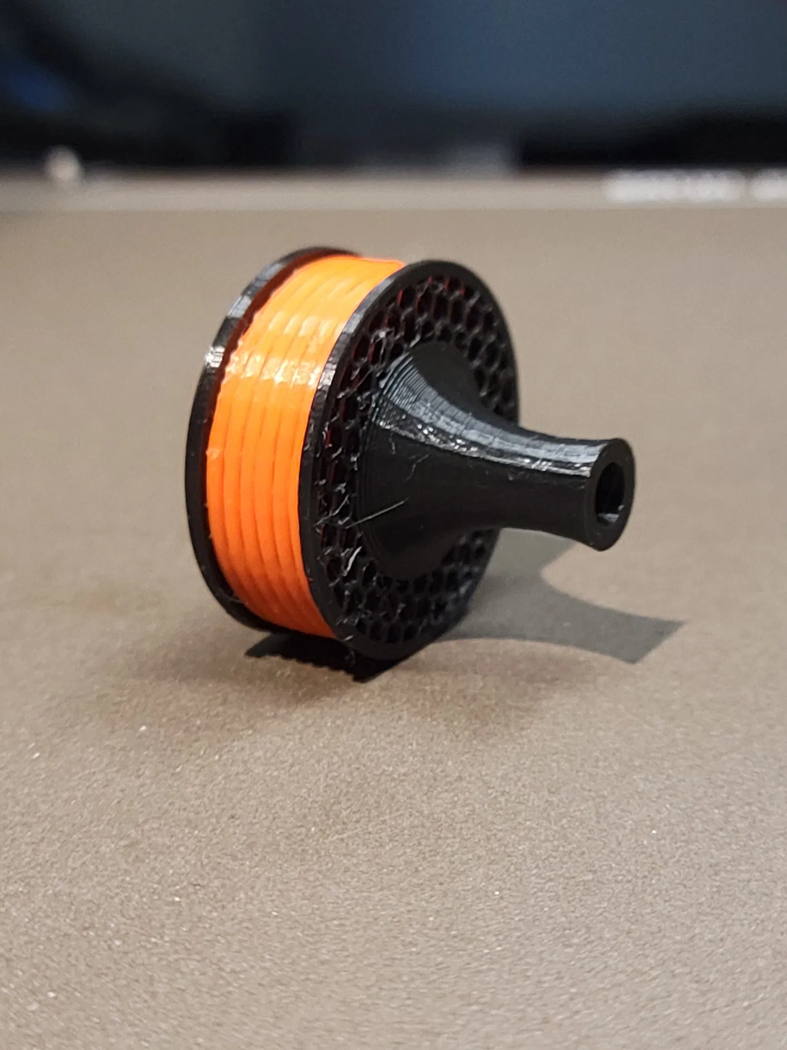 You could do this as a manual color swap based on layer if you don't have an MMU but the spool's core would show orange inside the hole instead of black so not quite as clean.