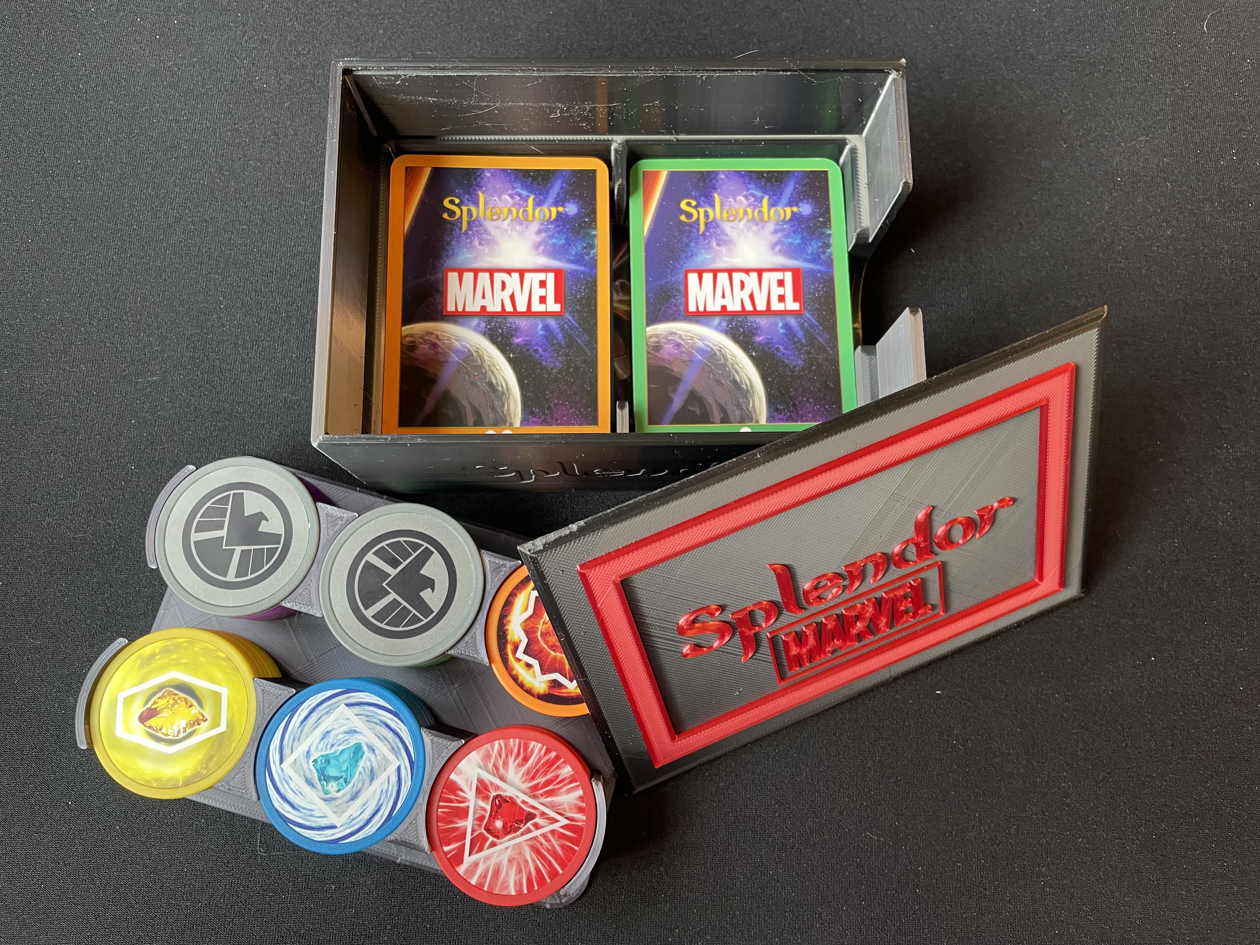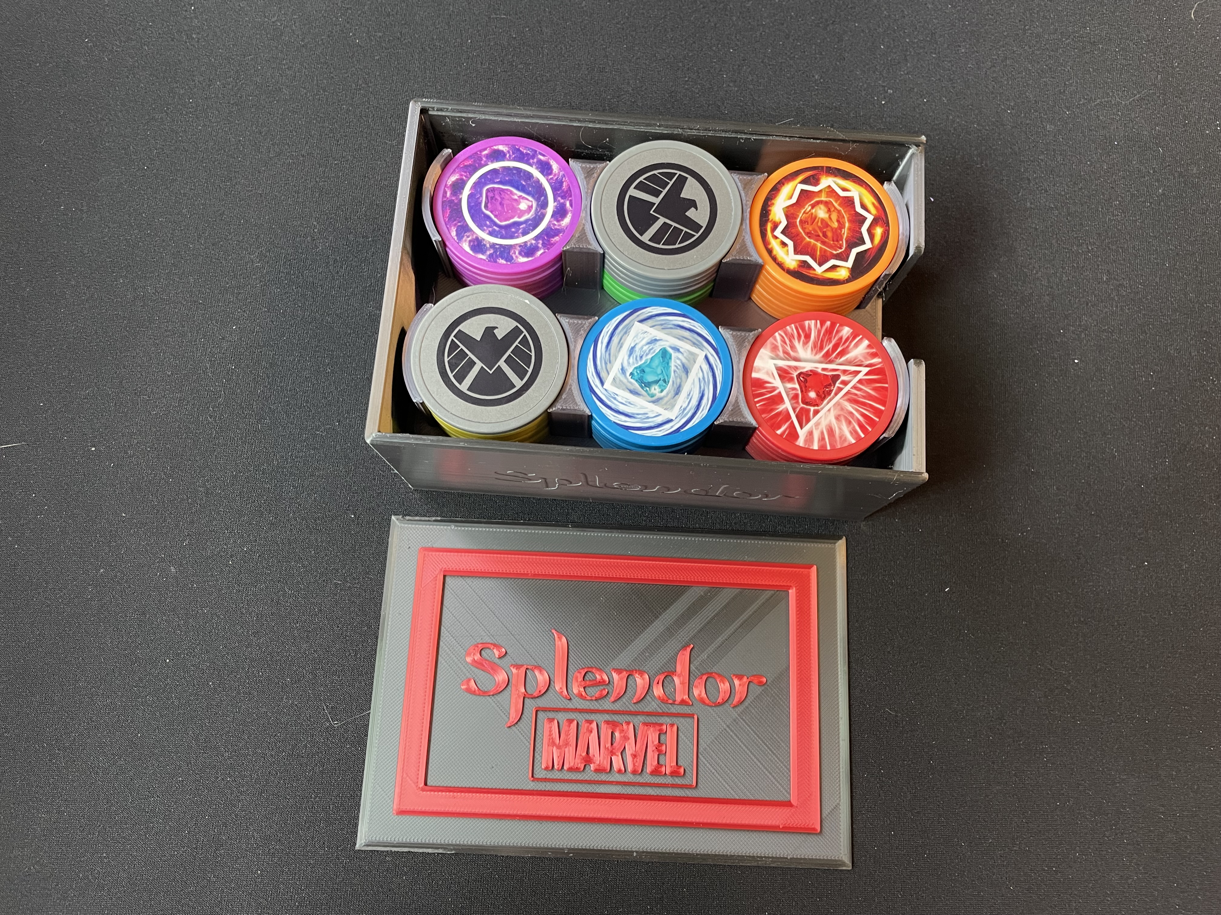 Hộp lưu trữ cho trò chơi Splendor Marvel của bạn. Bản remix siêu dễ in, có thể in nhiều màu.