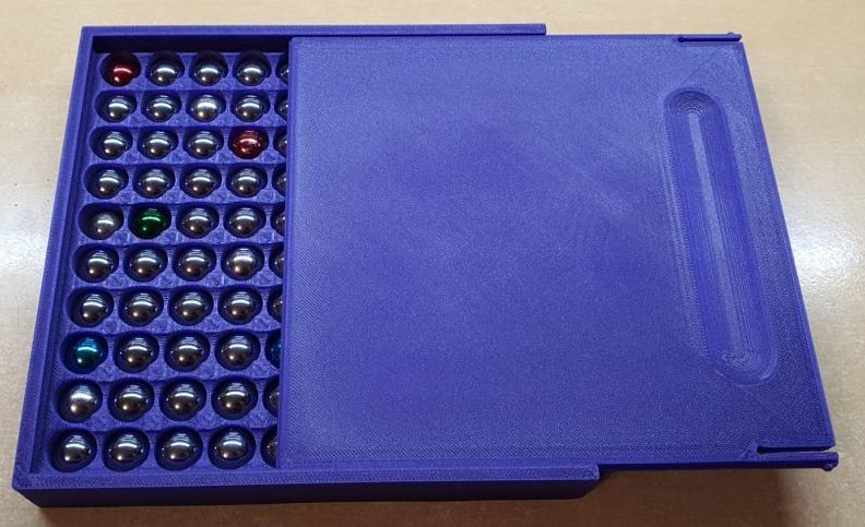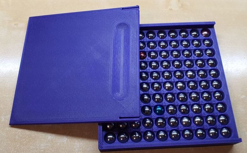 Một hộp đơn giản được thiết kế để lưu trữ 100 viên bi cho trò chơi Gravitrax. Giải pháp hoàn hảo để giữ cho các viên bi của bạn ngăn nắp và sẵn sàng cho mọi cuộc phiêu lưu trong đường đua.