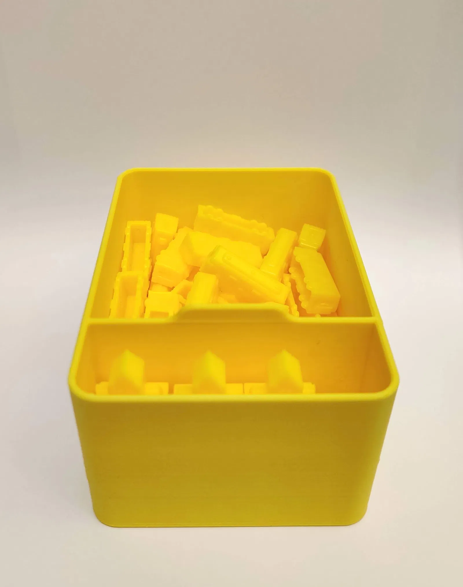 Hộp lưu trữ đơn giản dành cho 45 toa tàu và 3 nhà ga cho mỗi người chơi trong board game Ticket to Ride, phiên bản Châu Âu. Thiết kế in không cần hỗ trợ, tối ưu cho đầu phun 0.4mm.