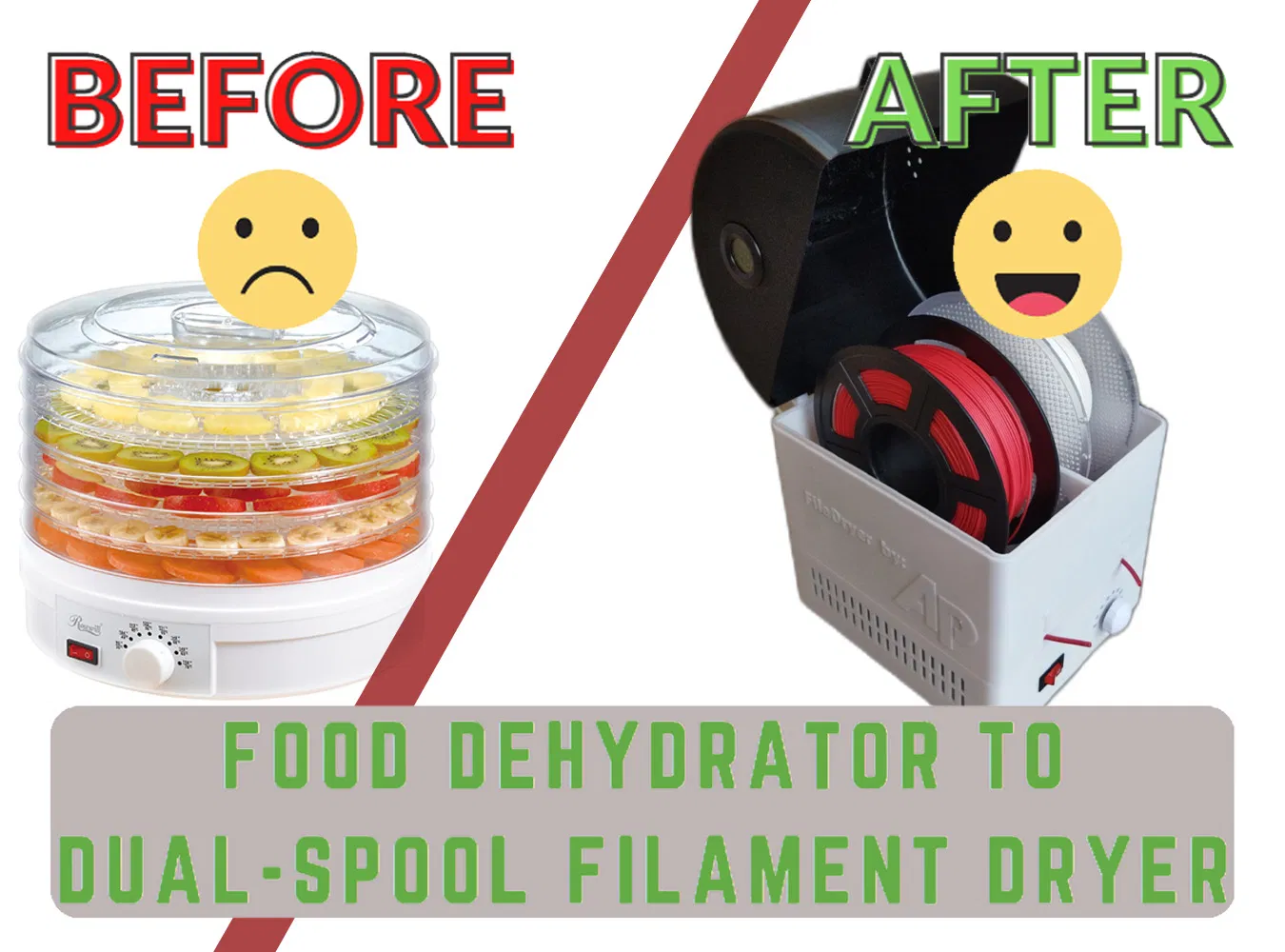 Chuyển đổi máy sấy thực phẩm thông thường của bạn thành máy sấy filament 2 cuộn. Bao gồm danh sách vật tư, hướng dẫn lắp ráp và khả năng tương thích với các loại máy sấy thực phẩm khác nhau. Tối ưu hóa để sấy filament hiệu quả.