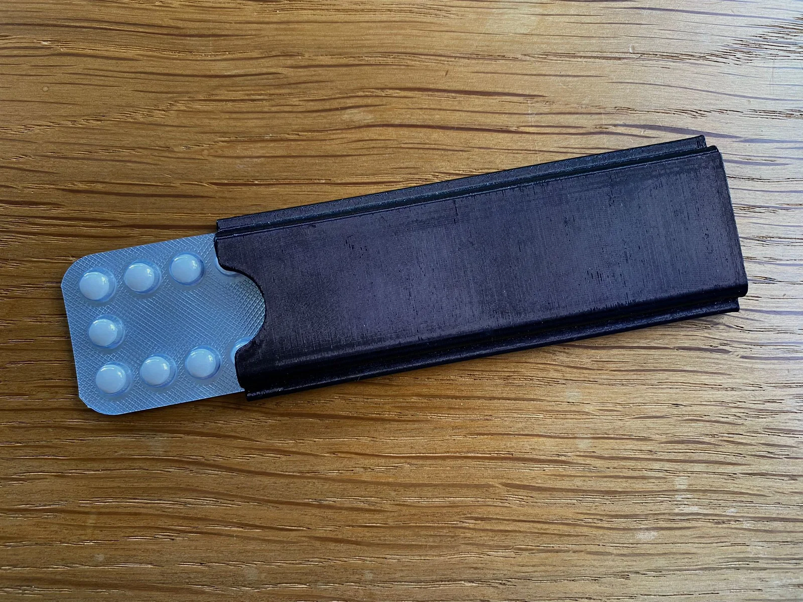 Bạn gái tui muốn có một cái hộp để đựng thuốc tránh thai an toàn, khỏi sợ bị ép rớt thuốc ra khỏi hộp. Cái vỉ thuốc chỉ cần trượt vô hộp là dính lại bằng ma sát.