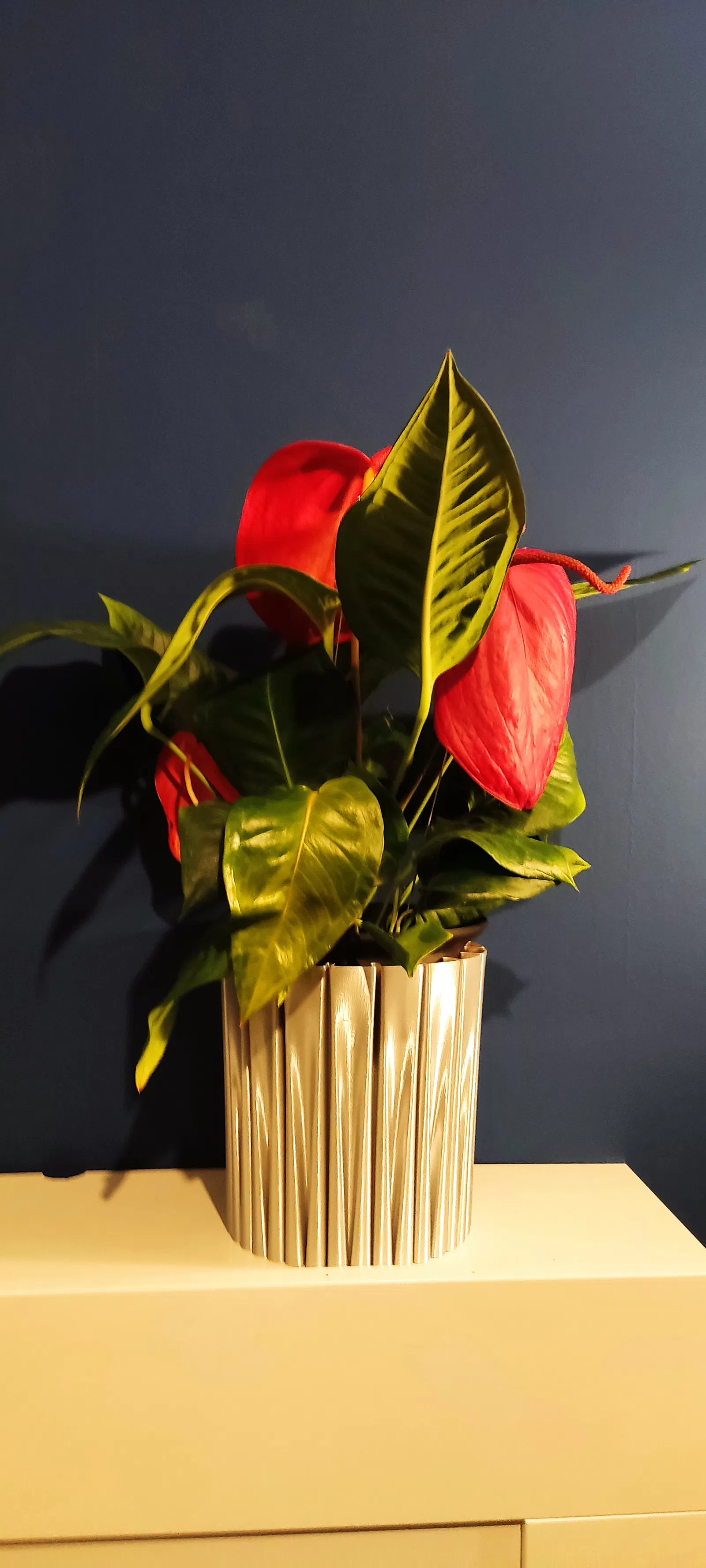 Chậu hoa đẹp cỡ lớn, in bằng PLA chế độ vase mode. Thông số in: độ rộng đường in 0.8mm, độ dày lớp 0.3mm, đầu phun 0.4mm. Rất phù hợp để trồng cây cảnh.