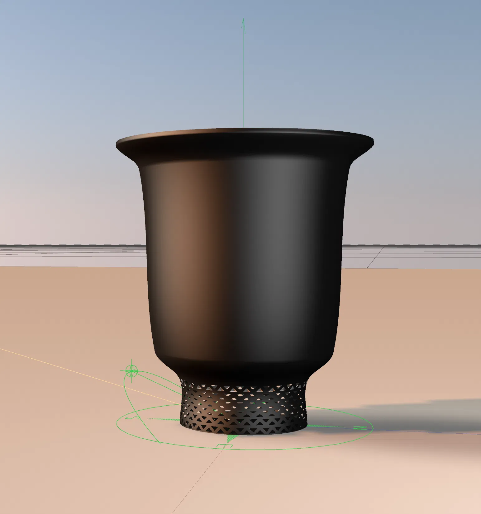 Chậu hoa đẹp cỡ lớn. In bằng PLA chế độ vase mode. Độ rộng đường in 0.8mm, độ dày lớp in 0.3mm. Đầu phun 0.4.