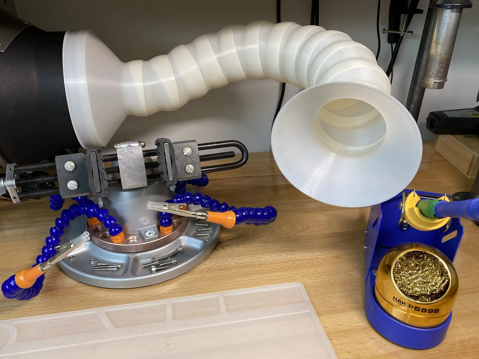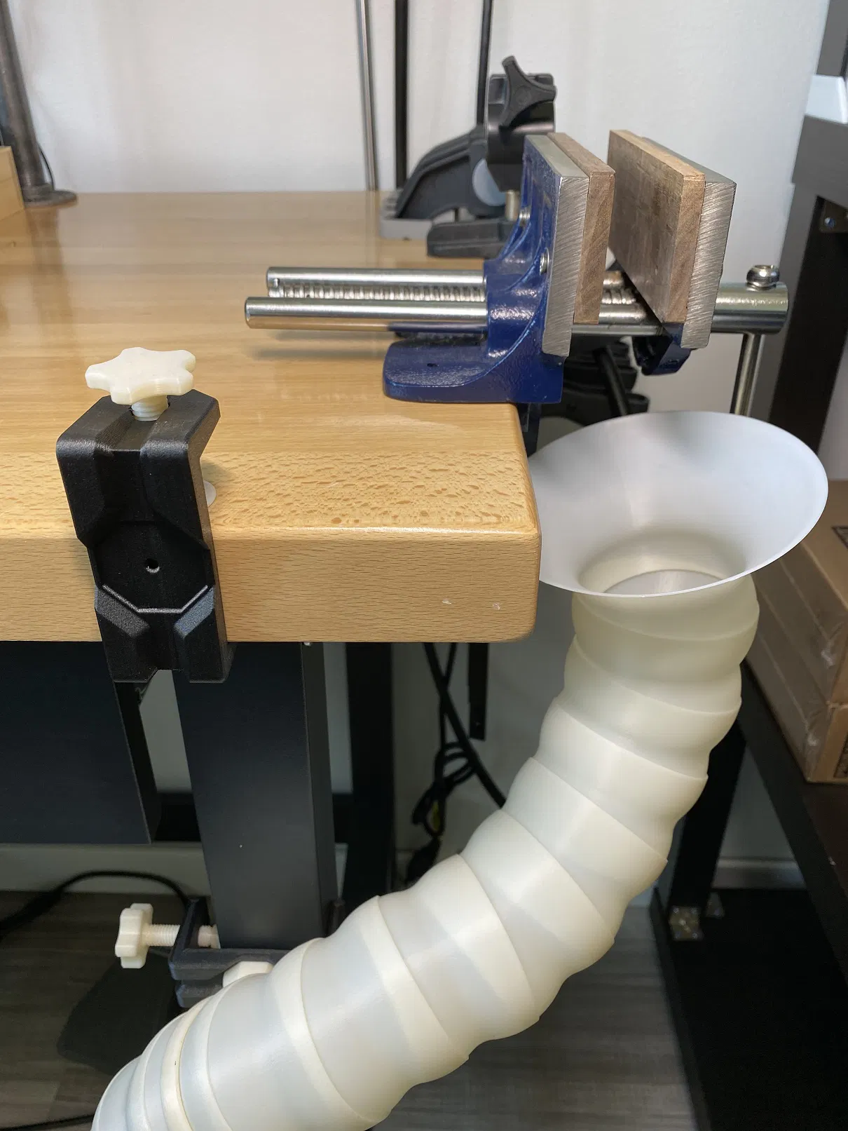 Hệ thống ống chân không 2.5in linh hoạt, dạng mô-đun, phân đoạn được thiết kế để in bằng chế độ vase mode. Các bộ phận có thể uốn cong 90°, có adapter đi kèm và tương thích với Loc-Line.