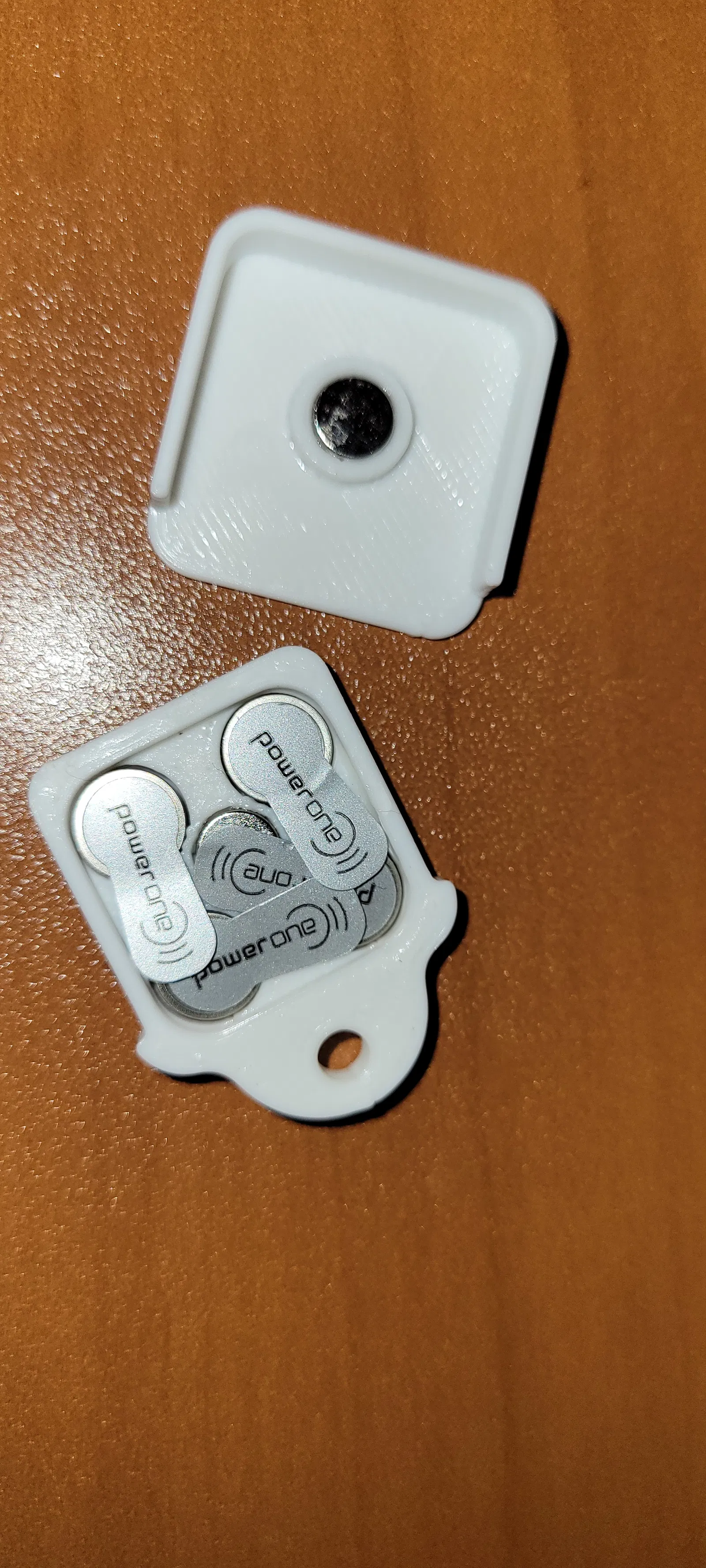 Một hộp để gắn vào móc khóa để bạn luôn có thể mang theo pin máy trợ thính của mình.
