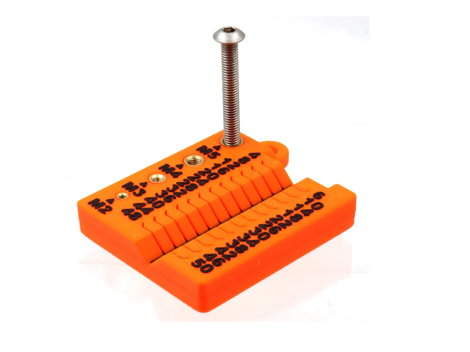 Bạn có một hộp ốc vít lộn xộn và quá lười để sắp xếp? Công cụ này giúp bạn đo và phân loại nhanh chóng ốc vít mét M2, M3, M4, M5 dài tới 50mm. Tích hợp thước đo và các lỗ cấy ren tiện lợi.