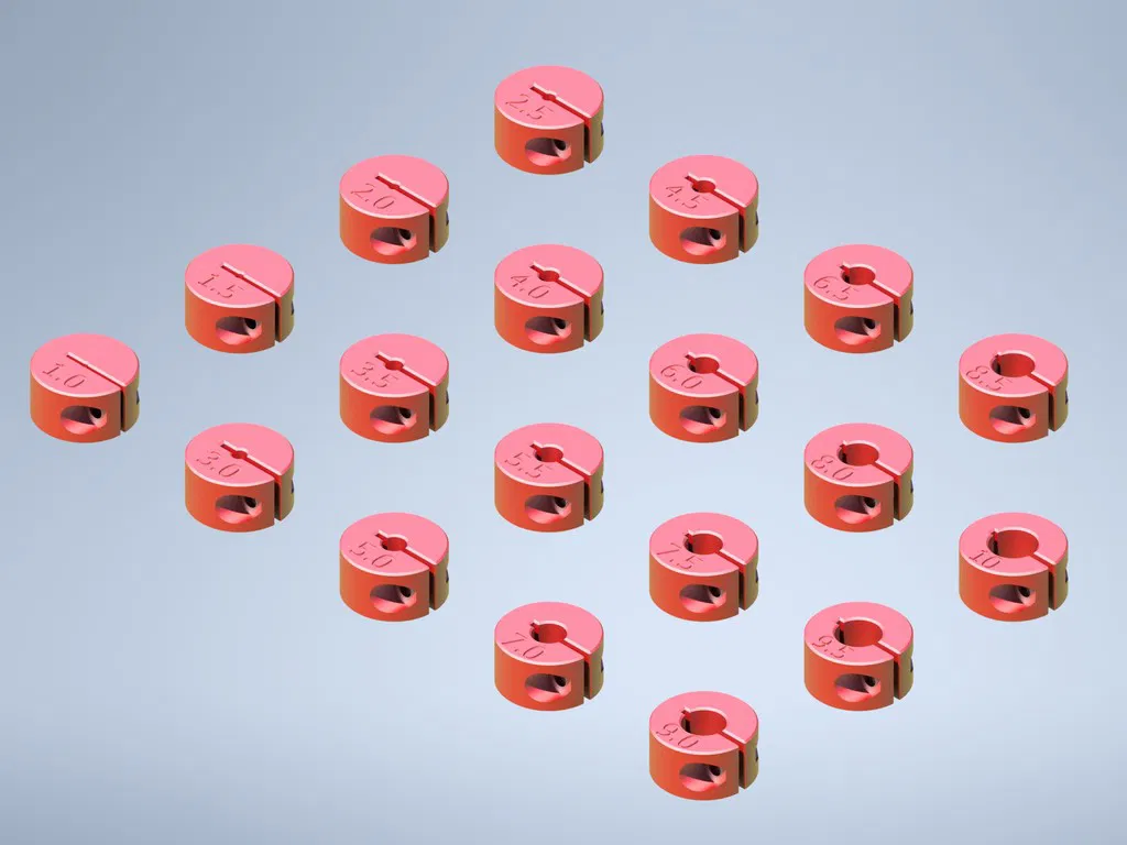 Mẫu chặn chiều sâu hệ mét này được thiết kế tùy chỉnh để khoan các tấm MDF. Bao gồm các kích thước được dập nổi, yêu cầu bu lông M3 và đai ốc. Lý tưởng cho các dự án tủ đơn giản. Có sẵn phiên bản Imperial.