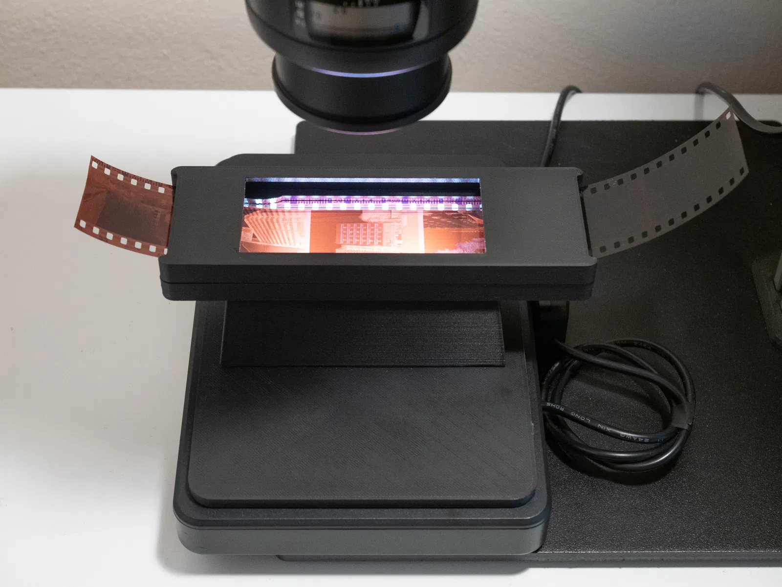 Bộ dụng cụ quét phim 35mm bao gồm giá đỡ phim toàn viền, bộ phận nâng và mặt nạ nguồn sáng. Thiết kế này tập trung vào độ phẳng phim, thời gian in thấp và hỗ trợ quét cận cảnh, được thử nghiệm với Pentax K-1. Vui lòng tham khảo hình ảnh để lắp ráp và các yêu cầu in chi tiết.