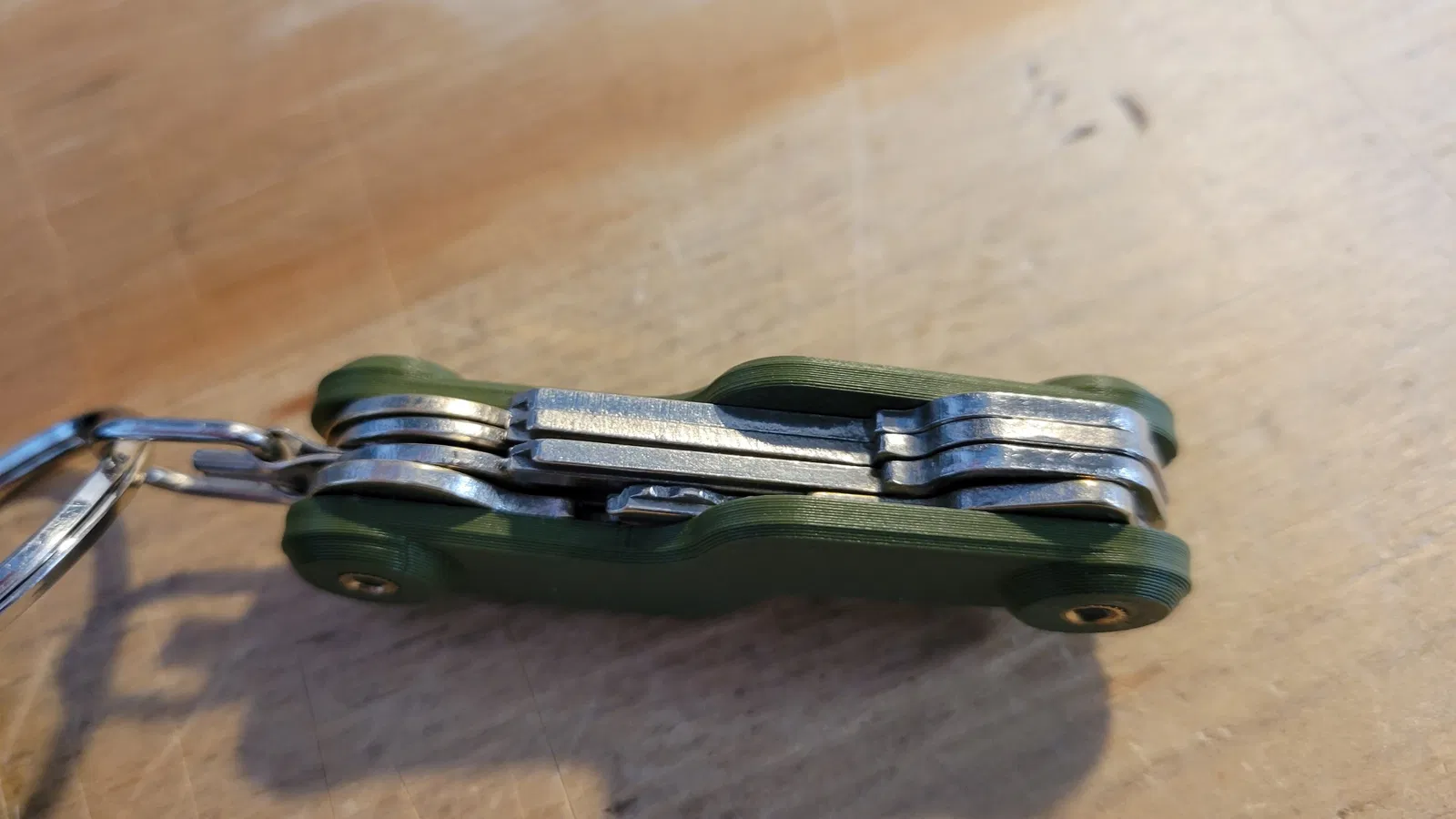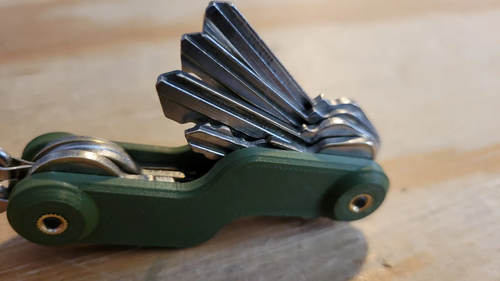 - Nó mỏng và nhỏ nhất có thể mà tôi thiết kế để giữ nhiều chìa khóa nhà và chìa khóa nhỏ hơn, đồng thời vẫn chắc chắn. Nó chiếm ít không gian túi nhất trong khi vẫn đủ chắc chắn cho việc sử dụng hàng ngày... và tôi đã sử dụng nó được ít nhất một năm.