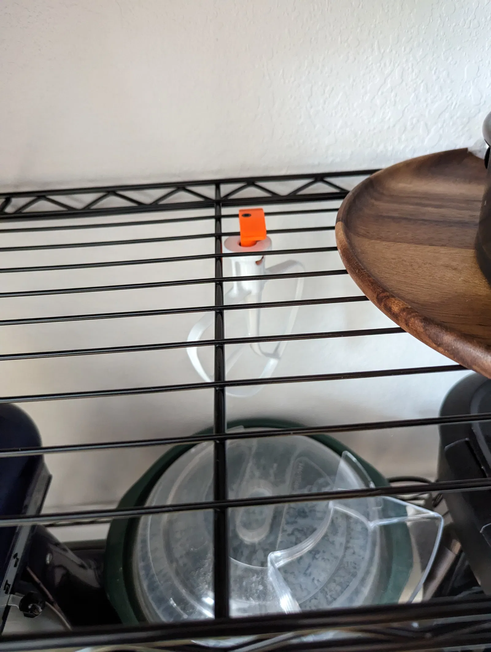 Giá treo cho các dụng cụ Kitchenaid, có thể kẹp và trượt trên giá có dây. Sử dụng vít M4x12 và ốc chìm M4 để kẹp các bộ phận. Các tệp CAD được cung cấp để bạn tùy chỉnh. In bằng PETG với 25% độ đặc ruột để đạt độ bền tối ưu.