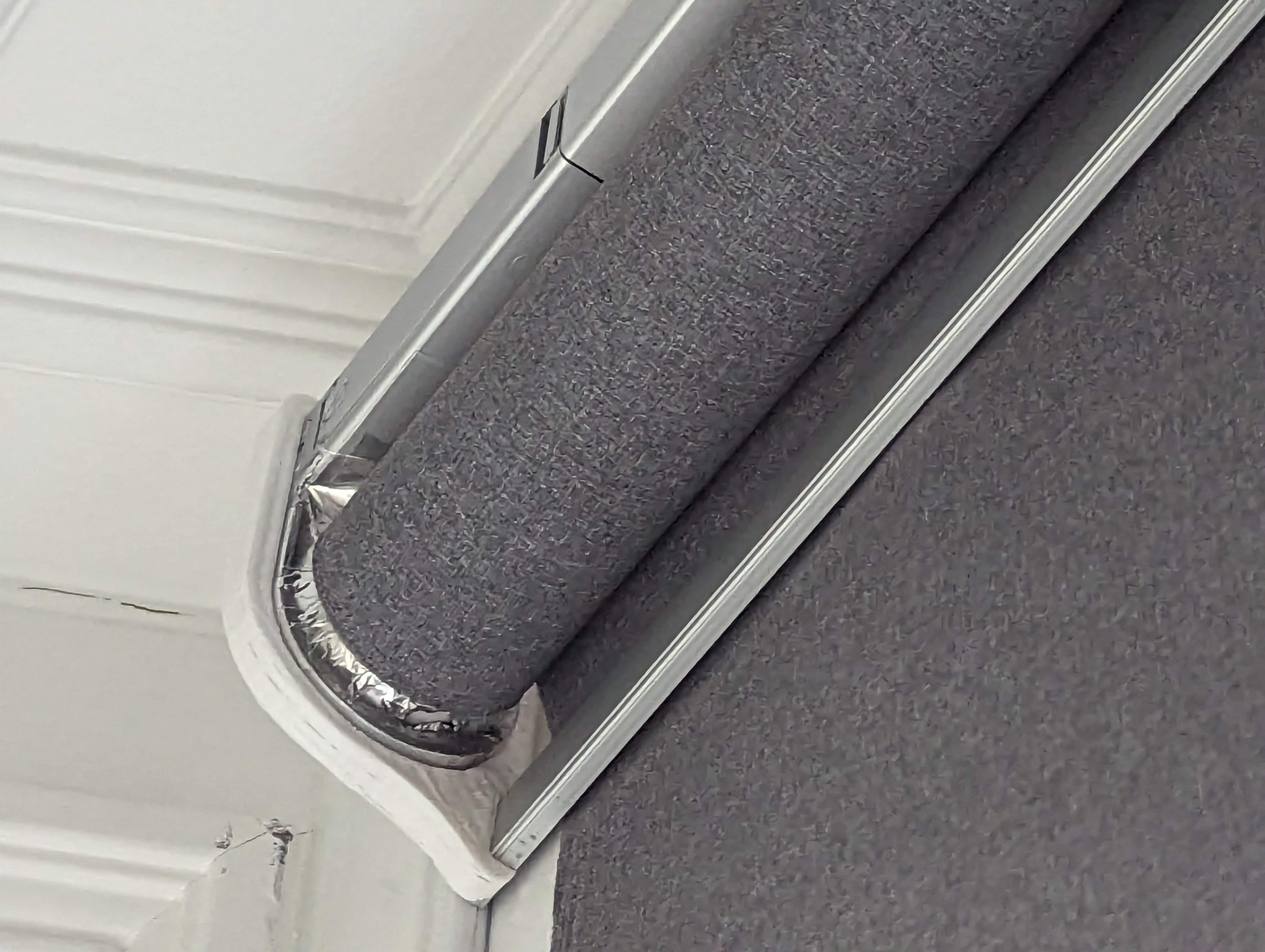 Những bộ chặn này được gắn ở cạnh của rèm fyrtur bằng giá đỡ cải tiến đã được thu nhỏ. Một thanh nhôm nhỏ có thể được sử dụng để ngăn rèm bị kẹt trong khung và ép rèm sát vào cửa sổ, giảm thiểu ánh sáng lọt qua.